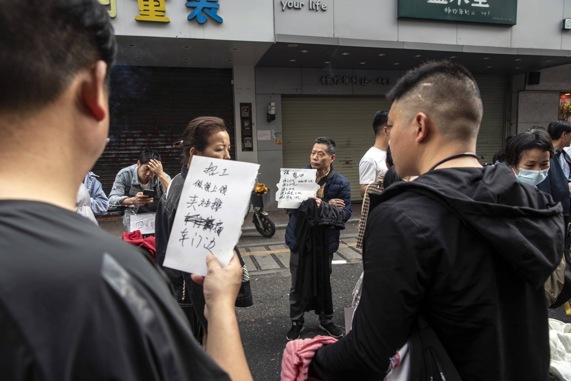 在广州市中心,这座中国最大的服装批发市场所在地,工厂老板和招聘人员表示,工人不愿意回来,因为他们被长时间的封锁、无薪工作以及激烈抗议的经历所伤害。一些人举着纸板招贴招聘信息,而另一些人则追着潜在员工,乞求几分钟时间谈论工作条件和福利。