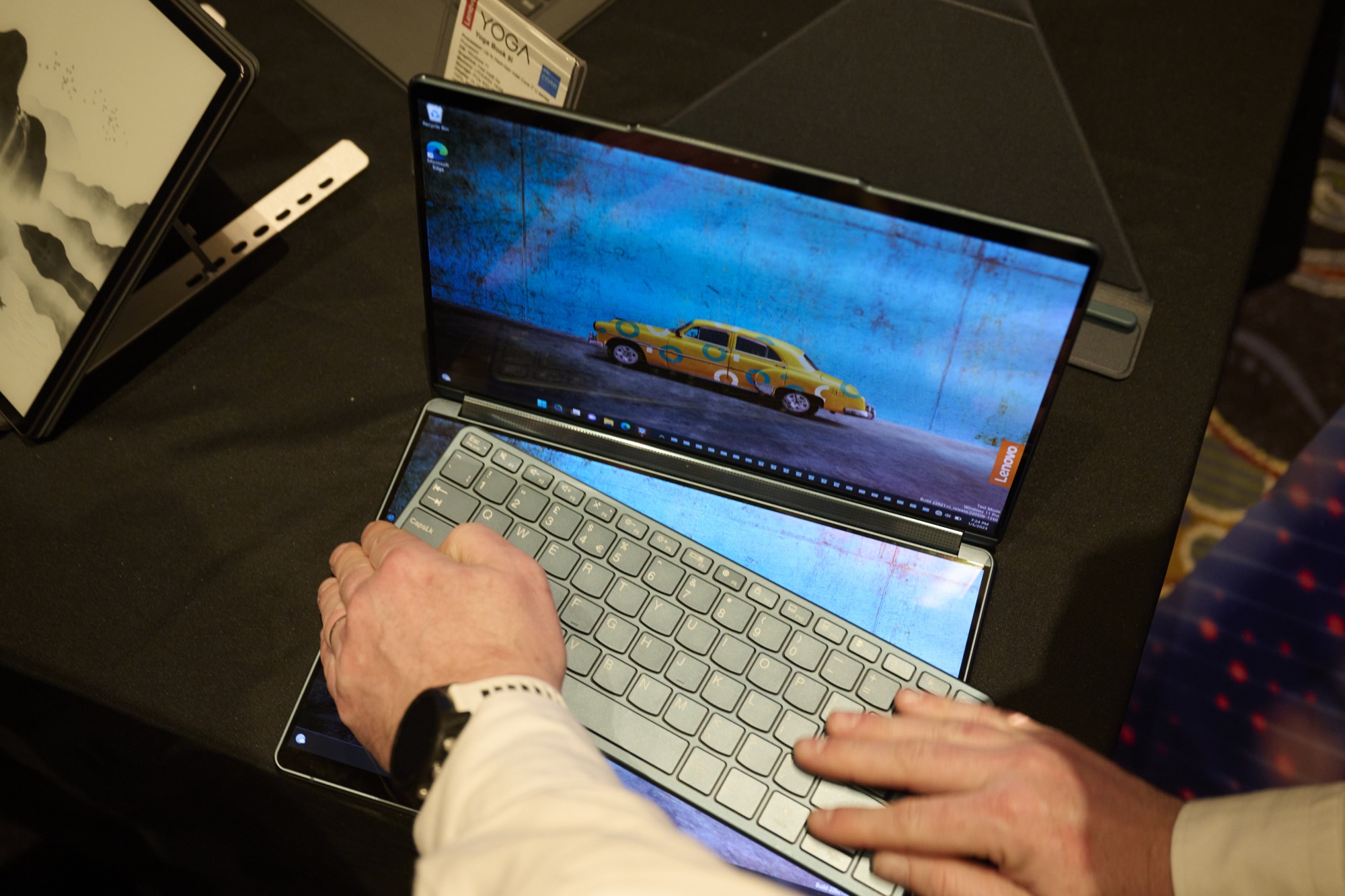 联想在2023年CES活动中展示的Yoga Book 9i,地点是拉斯维加斯。