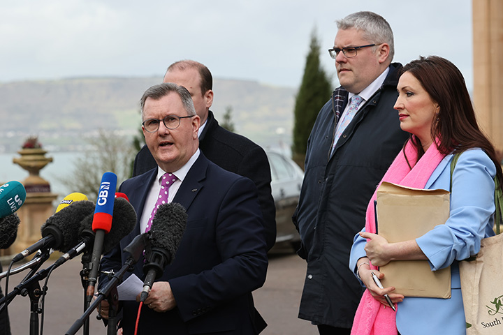 民主统一党领袖Jeffrey Donaldson在会见Sunak后向媒体发表讲话。摄影师:Liam McBurney/PA Wire他自己的保守党内可能会遇到反对,但如果Sunak能在未来几周内达成协议,这将给执政党一些喘息之机,因为他们正在为下一次选举做准备。根据计划,选举将在2025年1月之前举行,工党在民意调查中牢牢领先。