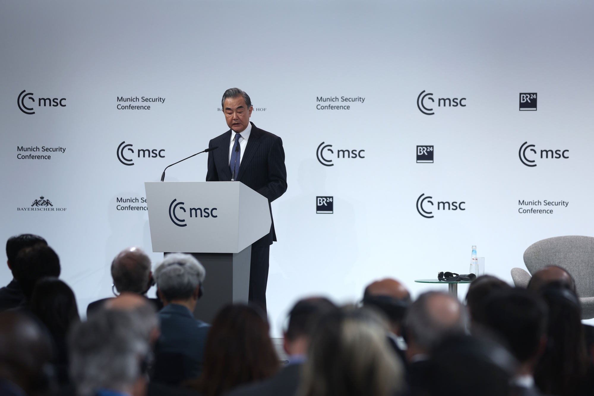 王毅在2023年2月18日慕尼黑安全会议上发表讲话。摄影师:约翰内斯·西蒙/盖蒂图片社“我们反对对核电站的袭击,反对对民用核设施的袭击,”王毅说。“我们必须努力防止核扩散和核灾难。”