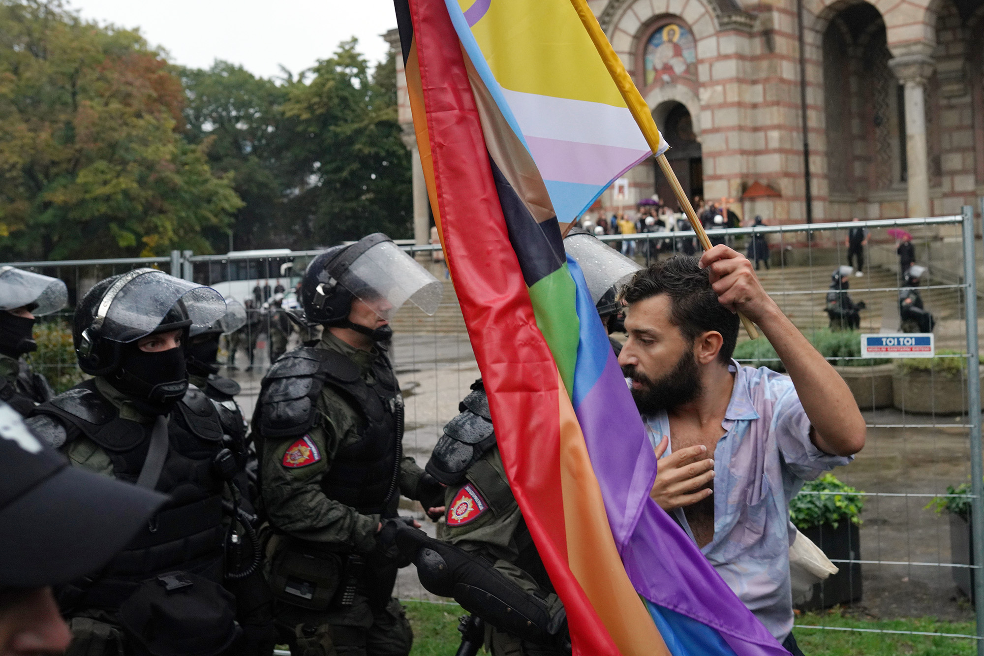 在塞尔维亚,警察在欧洲骄傲游行期间推开了挥舞十字架和宗教标志的反对示威者,而在土耳其,反LGBTQ大家庭游行在伊斯坦布尔举行,口号是“拯救你的家庭和你的下一代,对变态说不”,报告称。