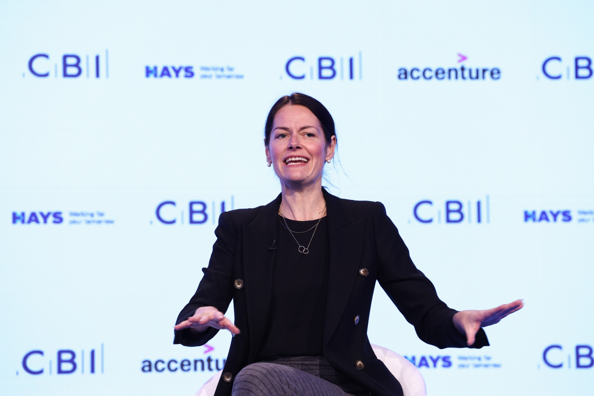 Darktrace首席执行官Poppy Gustafsson在伯明翰英国工商联会议上的一个小组讨论中。