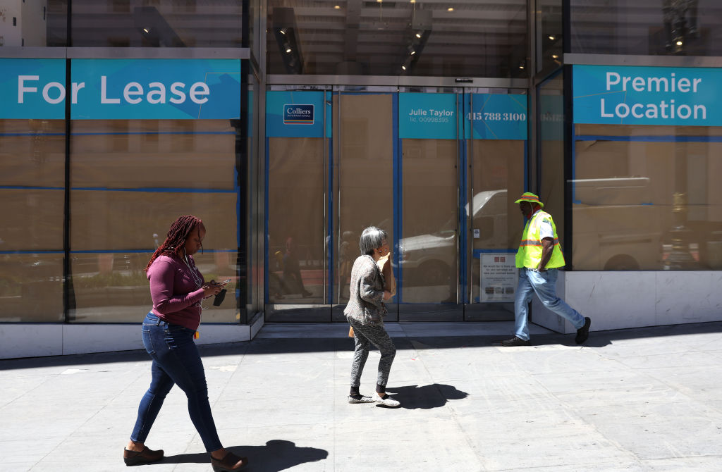 行人经过旧金山一家封闭的企业,空置的办公室给附近企业造成了打击。摄影师:贾斯汀·沙利文/盖蒂图片社 北美与州相比,城市在工人居住地和通勤方式以及是否在当地熟食店买午餐等方面有更多的赢家和输家。最终的担忧是,如果没有这些工人,城市可能会陷入一种“城市末日循环”:零售和房产税收减少,商业房地产价值下跌,社会服务被削减,犯罪率上升。