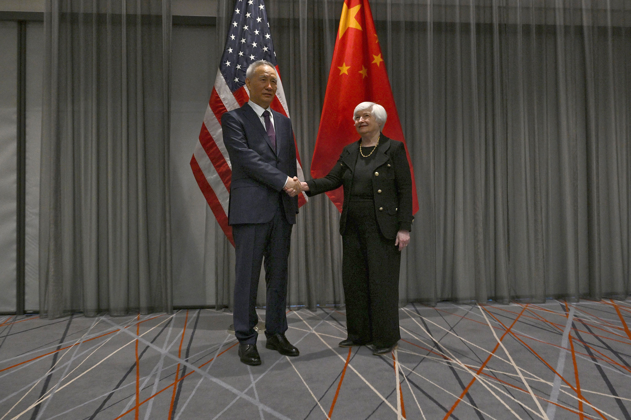 珍妮特·耶伦(Janet Yellen)与刘鹤在1月18日在苏黎世合影。摄影师:Sebastien Bozon/AFP/Getty Images“中国缺乏全面参与并及时行动的意愿确实成为了一个障碍,”她说。