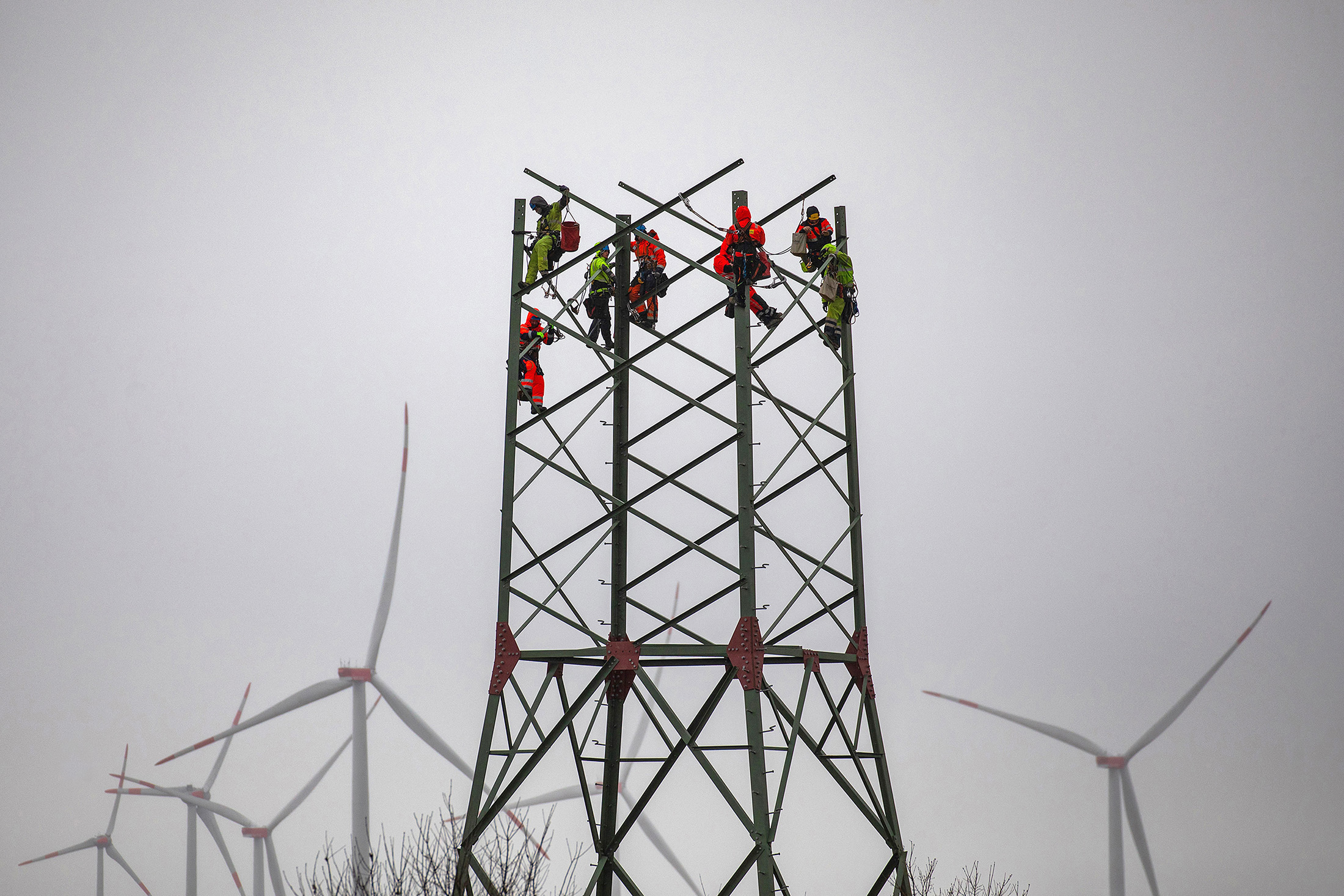 在四月份在德国组装高压电力输电塔。