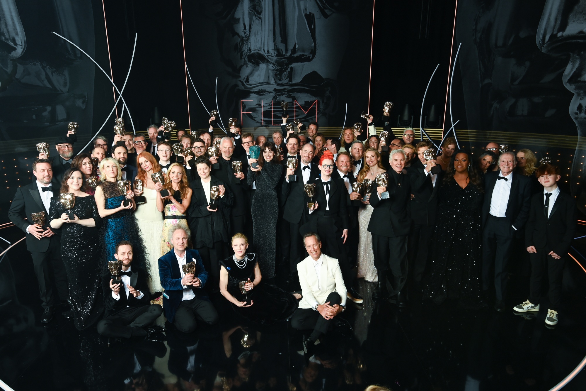 英国电影学院奖得主在典礼结束后合影。摄影师:Stuart Wilson/Getty Images英国电影学院奖在2020年采取了一系列措施,以增加入围演员和电影制片人的多样性,因为当年的提名名单全是白人。这些改革包括增加提名人数,以及增加来自少数群体的投票成员。在连续两年有一半的演员获奖者不是白人之后,今年的典礼被视为一步后退。