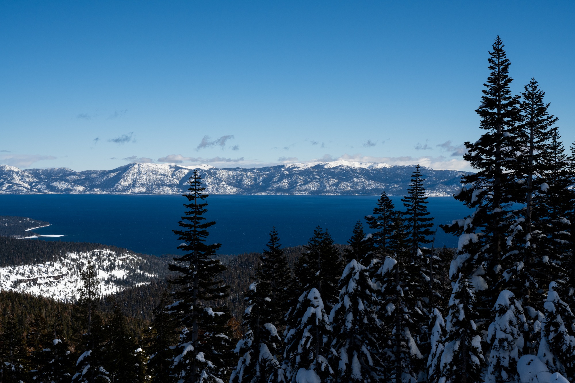 1月22日,雪覆盖的山脉环绕着塔霍湖。