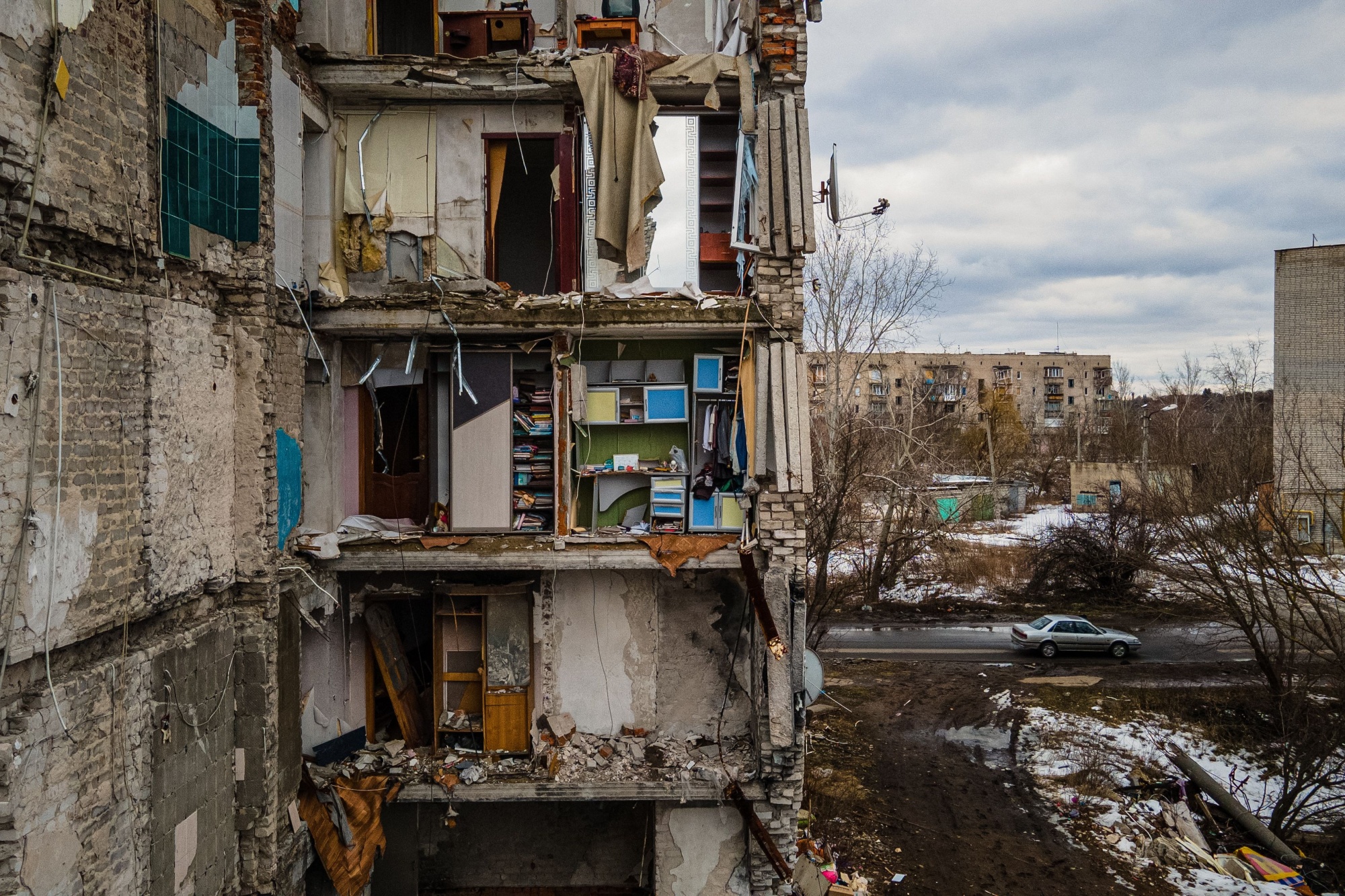 俄罗斯炮击造成乌克兰伊兹缅的住宅楼受损。