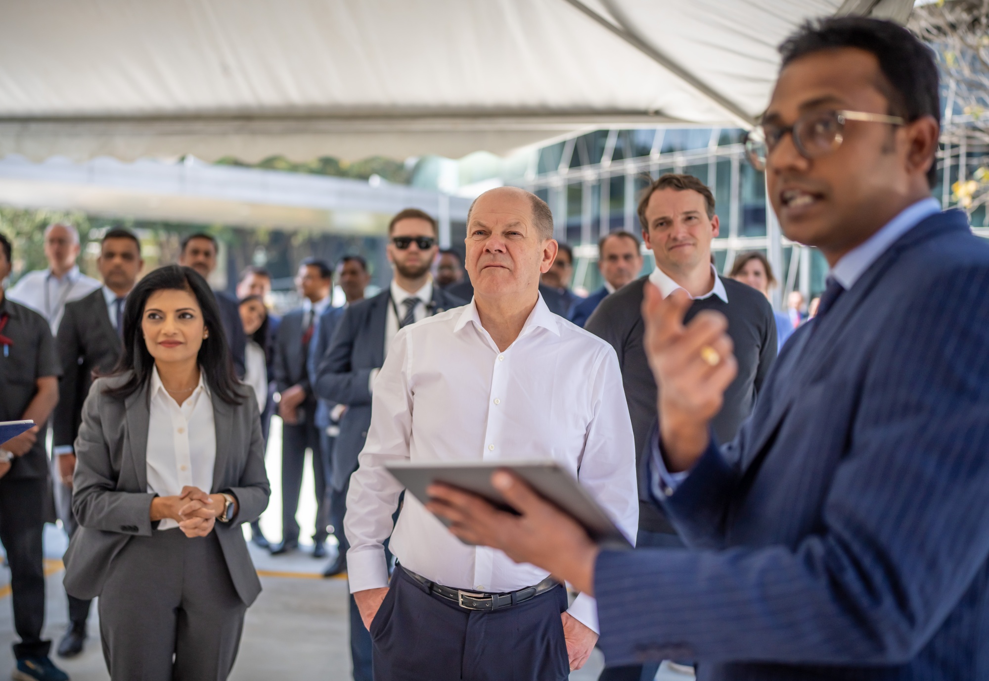 Olaf Scholz访问了SAP Labs India的印度分部,2月26日。