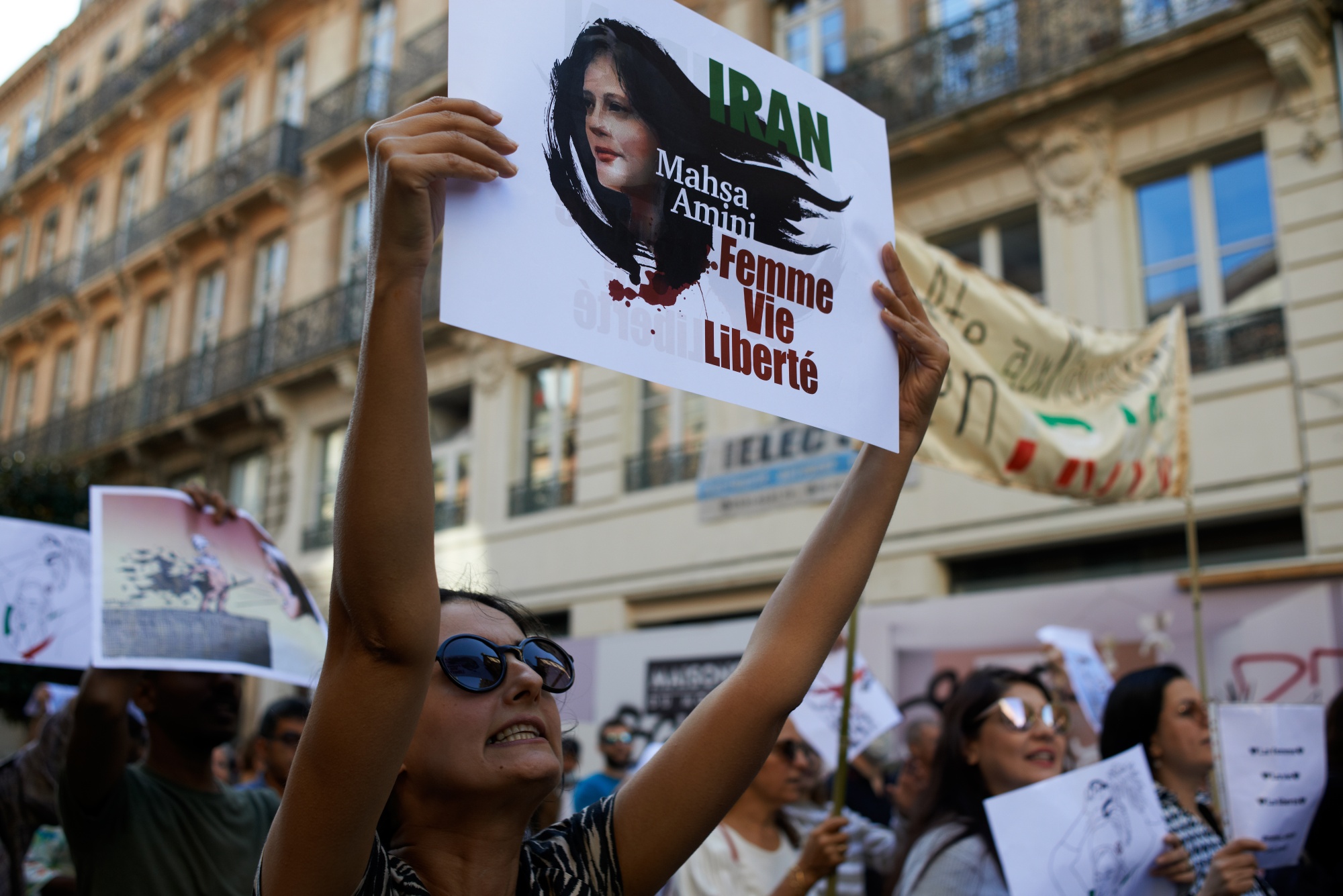 一名妇女在法国的一次游行中举着玛莎·阿米尼的画像。来源:NurPhoto订阅**我们的中东新闻简报并关注我们 @middleeast 以获取该地区的新闻。