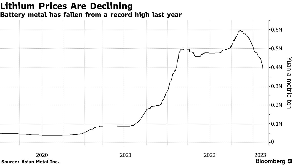 根据高盛集团的说法,中国汽车行业对锂的需求在最近几个月已经下降了一半以上,这是一个戏剧性的逆转,将进一步推动市场的下滑。中国的价格已经比去年的高点下跌了30%以上。