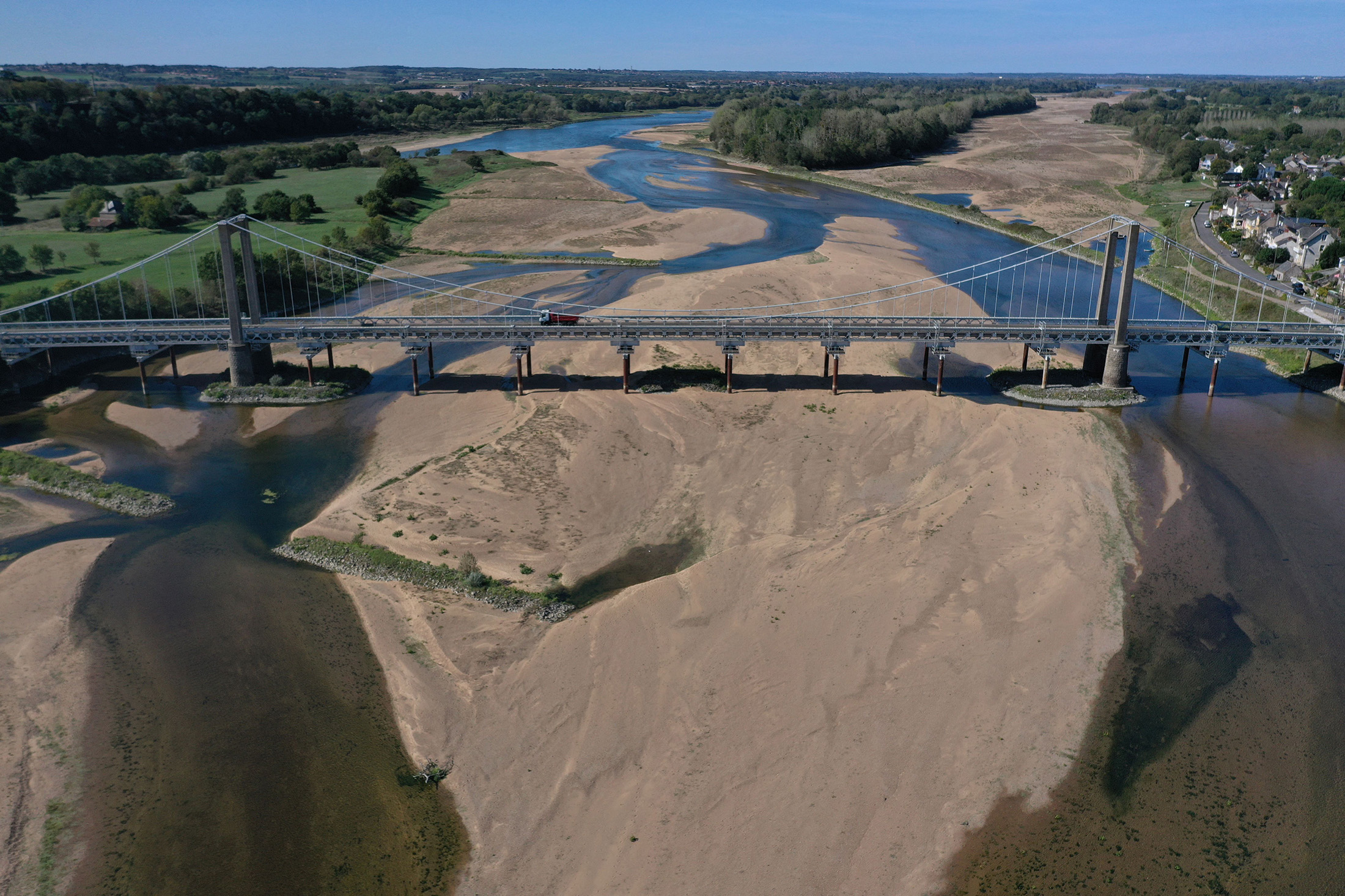 在2022年法国洛瓦尔桑斯地区干旱条件下的干涸的卢瓦尔河河床。
