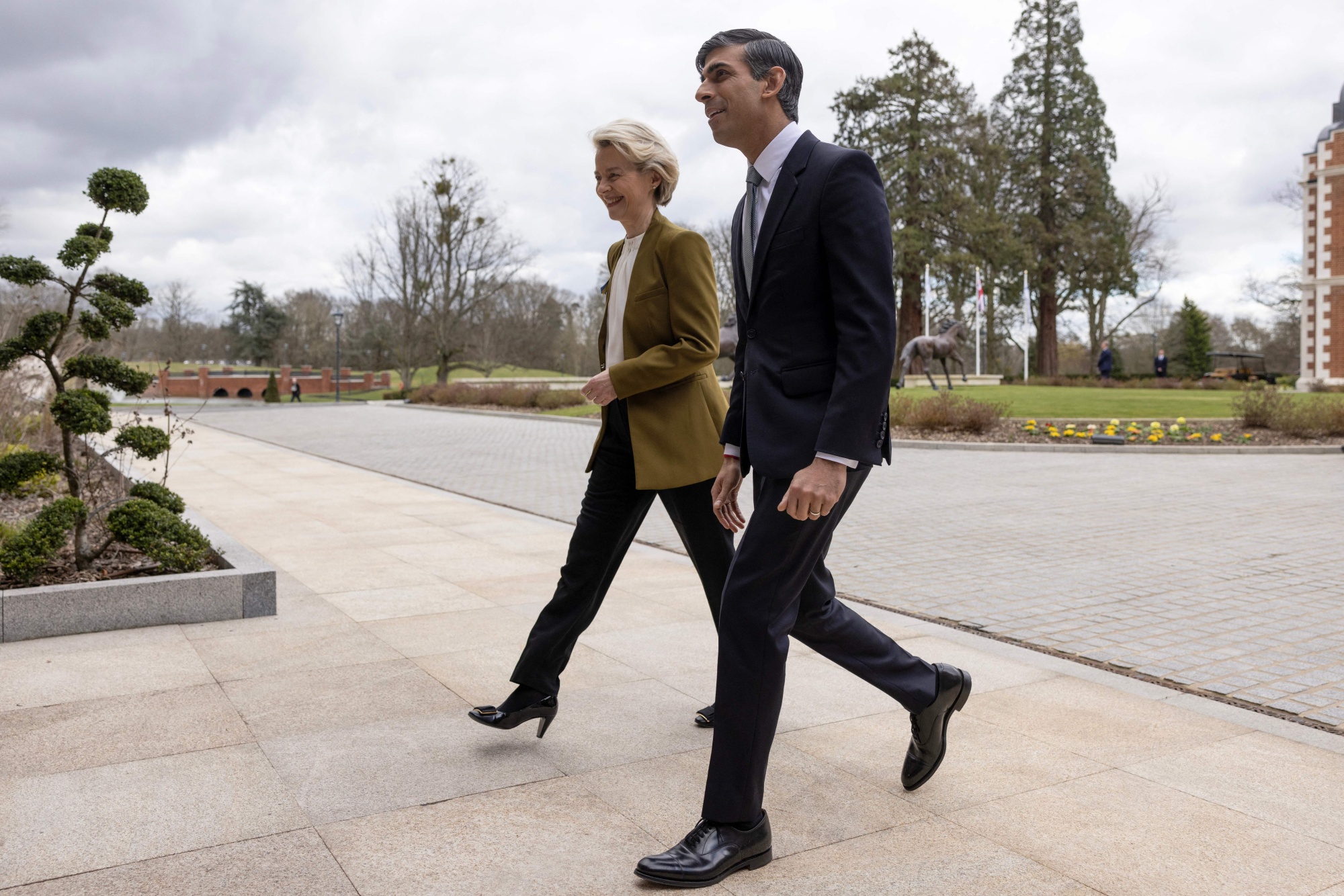 英国首相和欧洲委员会主席在温莎城堡附近开始谈判后迅速达成协议,Von Der Leyen将在周一晚些时候与查尔斯三世国王会面。