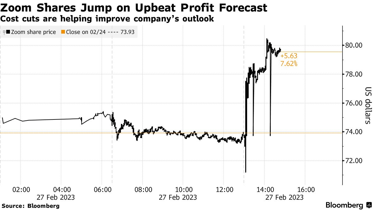 Zoom(ZM)股票在盈利前景超过分析师预期后上涨 - 彭博社