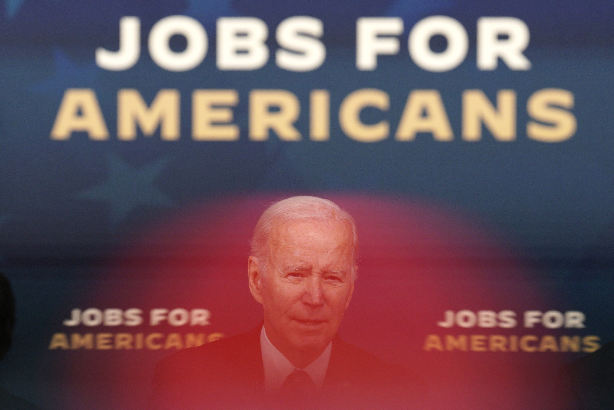 美国总统乔·拜登于2023年2月3日星期五在华盛顿特区讲话。美国劳动力市场在1月份表现火热,就业意外激增,失业率降至53年低点,与衰退预测背道而驰。