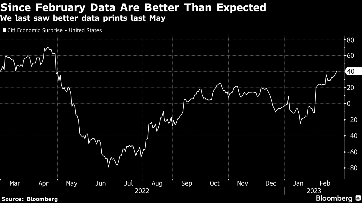 我们看到的是,自秋季以来,数据首次出现正面惊喜。因此,将衰退预测视为在2022年夏初触底的趋势的外推之一。随着美联储以每季度0.75个百分点的速度加息,外推更多的下行是有道理的。但是现在情况已经发生变化,是否继续外推更多的上行就不那么合理了呢?