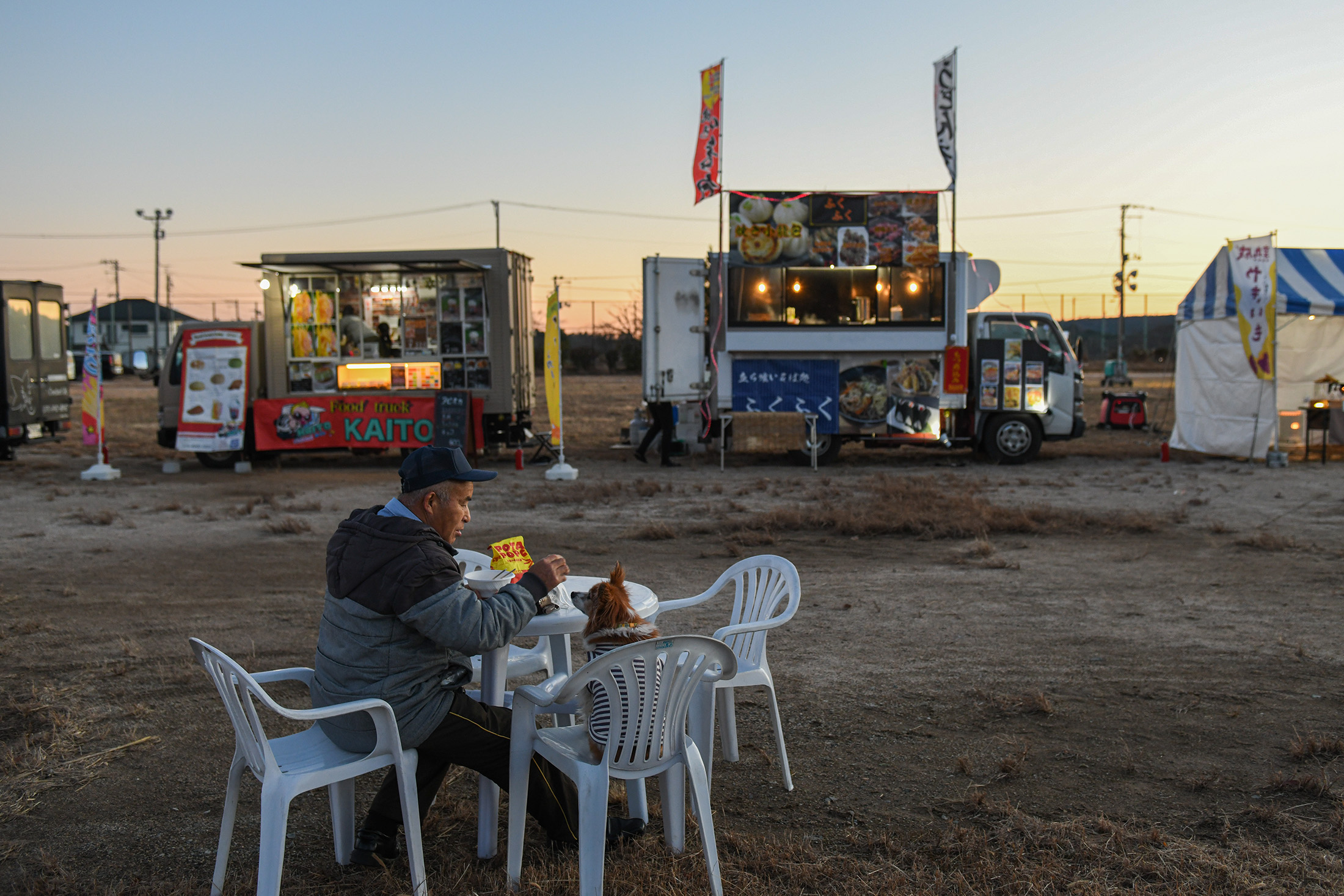富冈初中原址现在摆满了食品车,用于推广该地区的重建。摄影师:Noriko Hayashi/Bloomberg