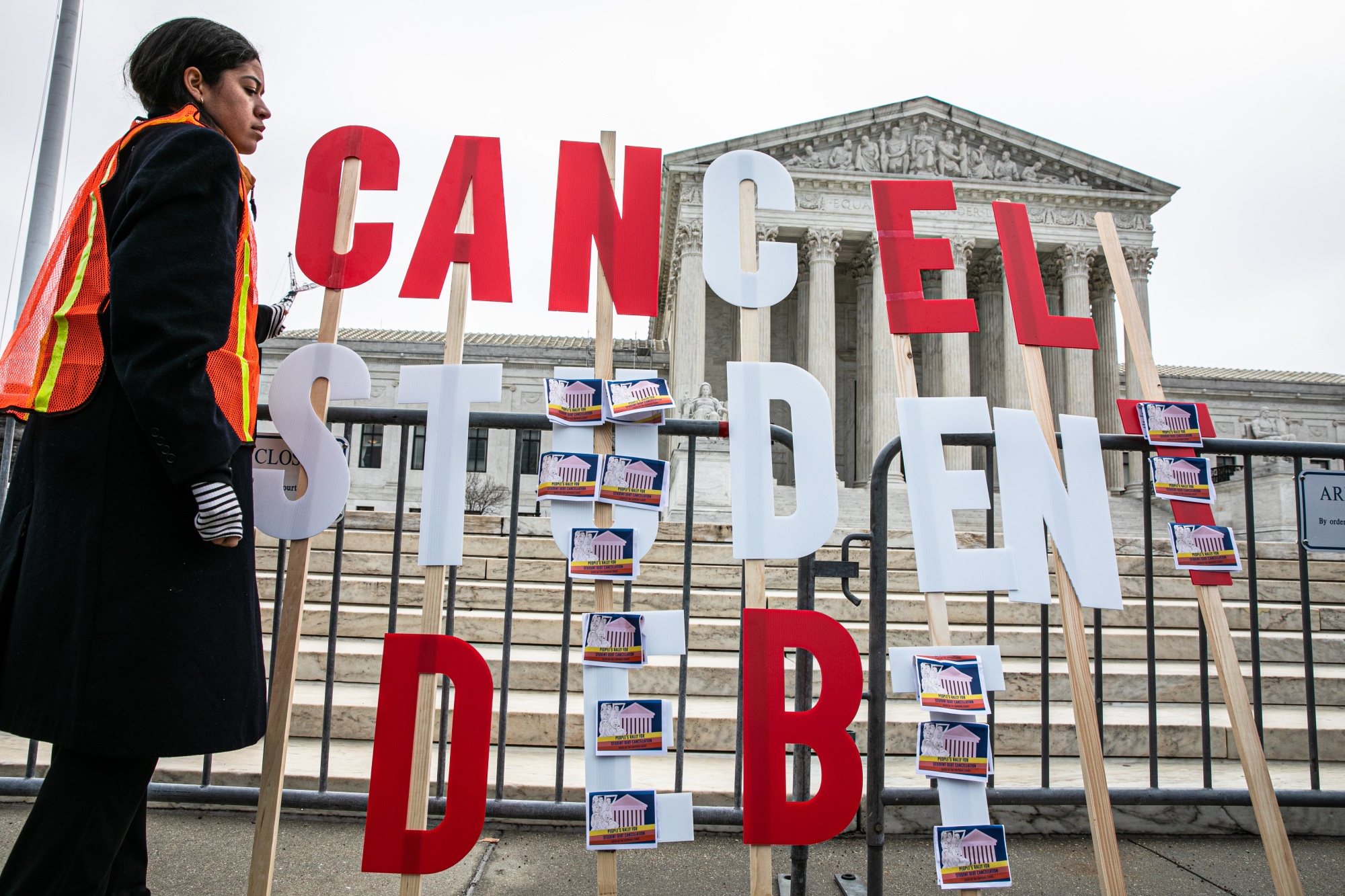 支持取消学生债务的示威者在华盛顿特区美国最高法院外。