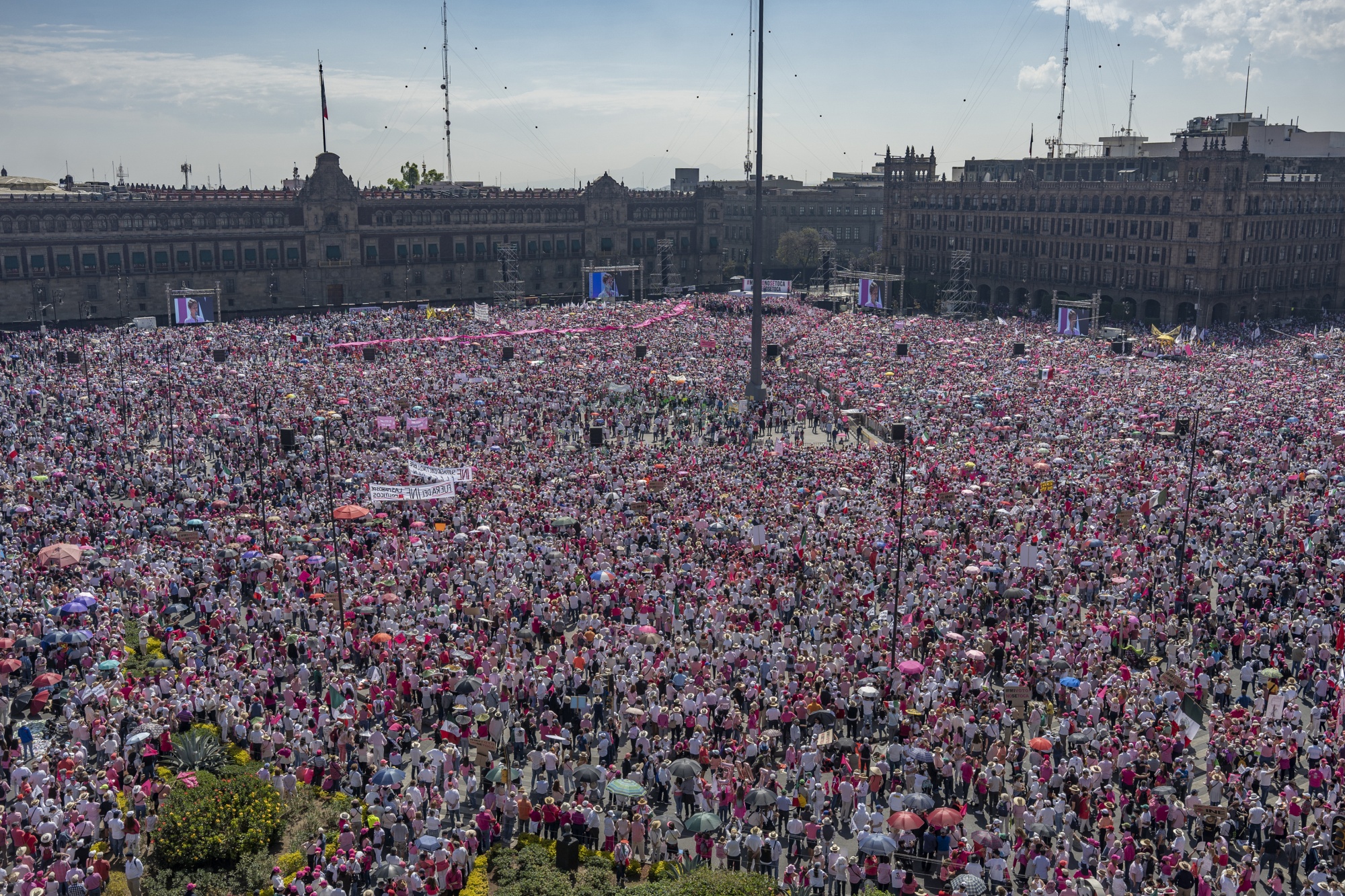 墨西哥城 Zocalo 广场上的抗议者,反对2023年2月26日提出的选举改革。