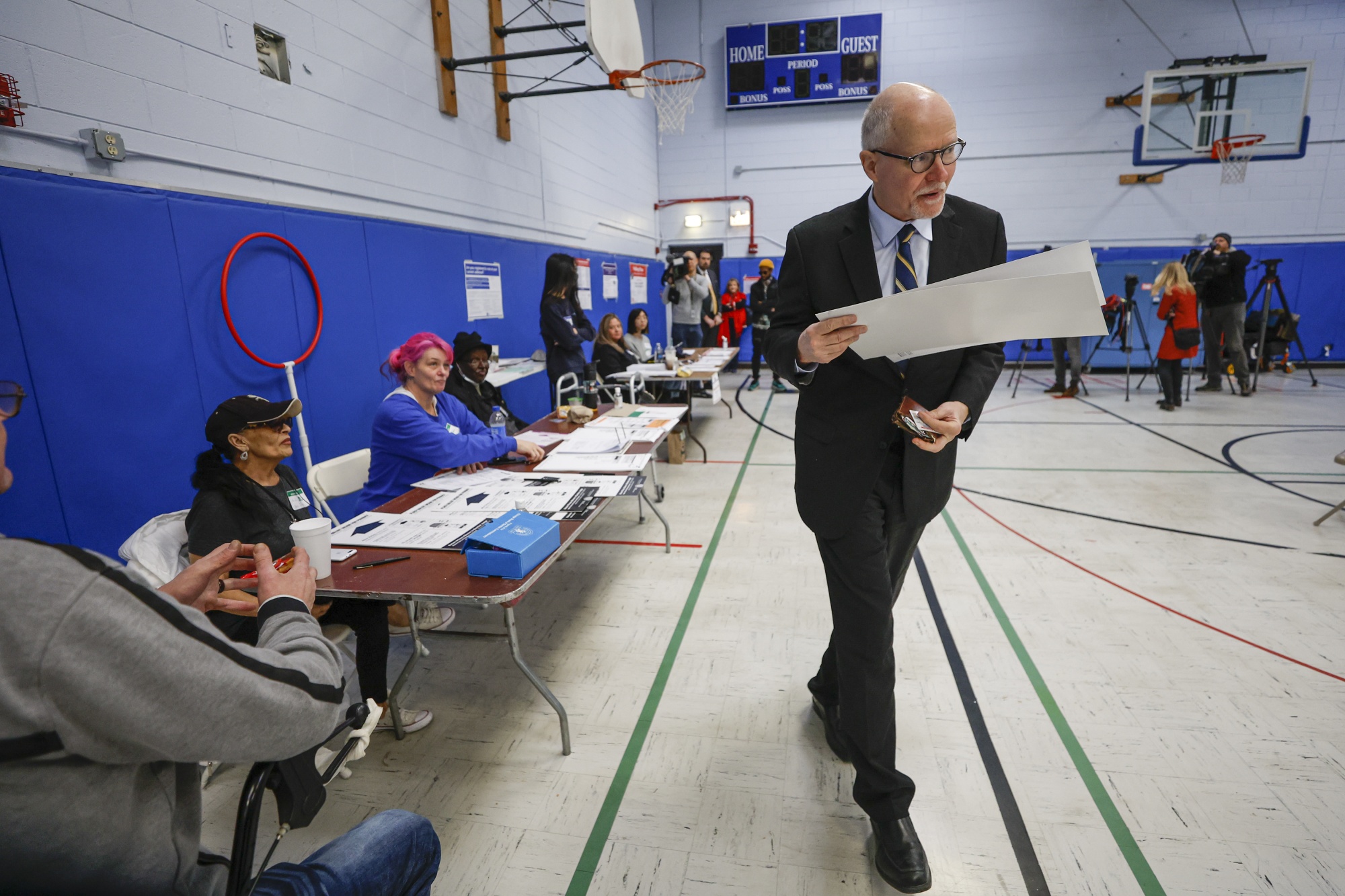保罗·瓦拉斯在2月28日的市长选举中在罗伯特·希利小学投票。摄影师:卡米尔·克拉钦斯基/盖蒂图片社芝加哥的市长决选可能会受到Citadel和Madison Dearborn Partners的高管以及全国最大的教师工会的影响。