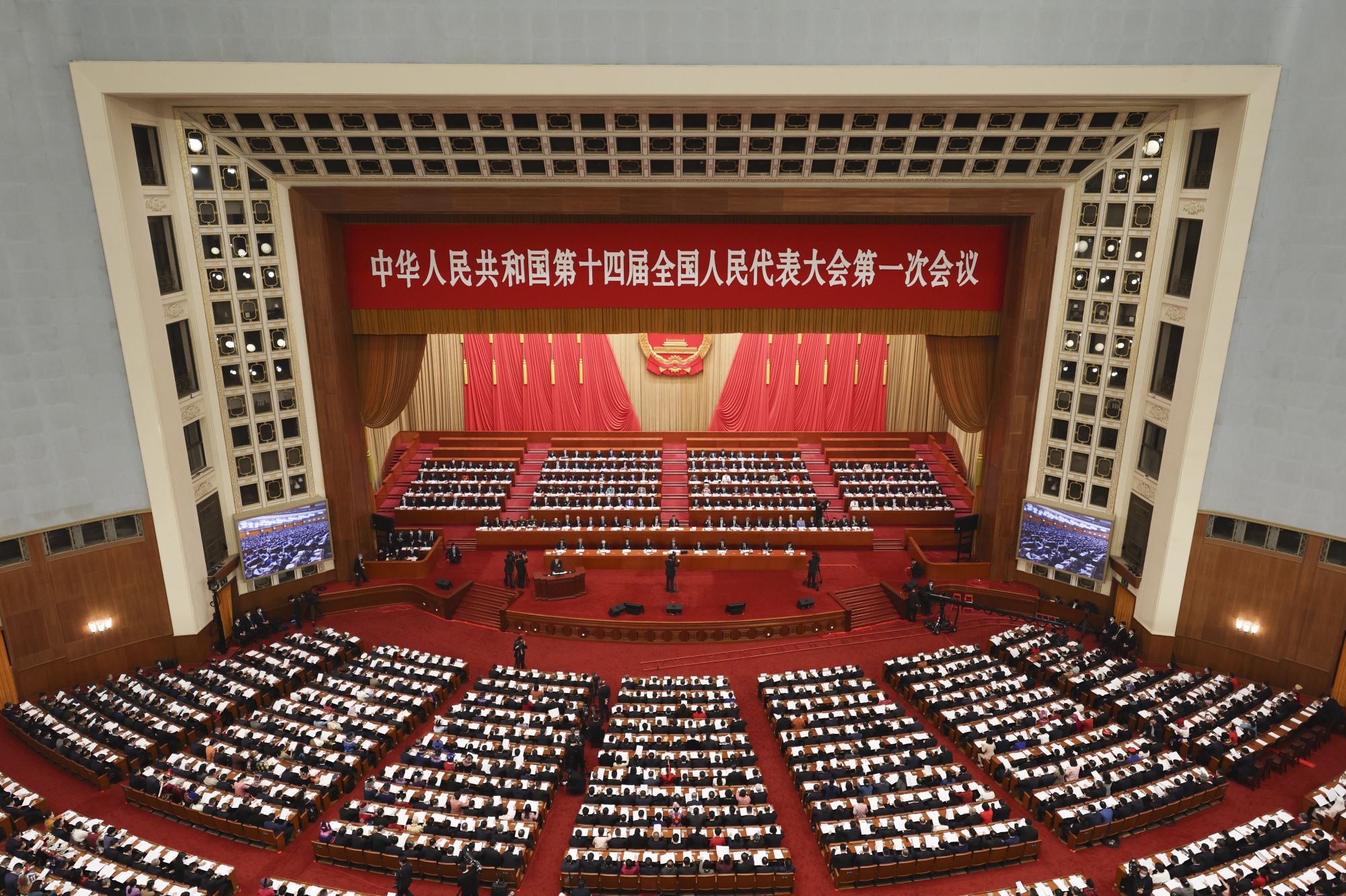 人民大会堂在3月5日北京举行的第十四届全国人民代表大会第一次会议开幕式上。