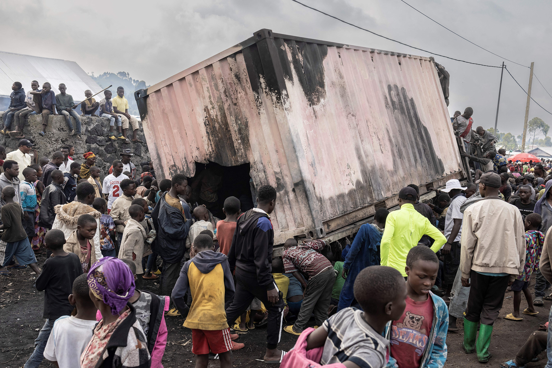 居民在刚果民主共和国尼拉贡戈地区卡尼鲁奇尼亚(Kanyaruchinya)拆解联合国刚果稳定使命的一辆车,时间为2月8日。摄影师:Guerchom Ndebo/AFP/Getty Images特什谢克迪和联合国专家组指责卢旺达支持武装组织之一M23,该组织声称自己是在保护卢旺达血统的刚果人。该组织发动的持续进攻迫使数十万人逃离,并威胁到贸易枢纽戈马。