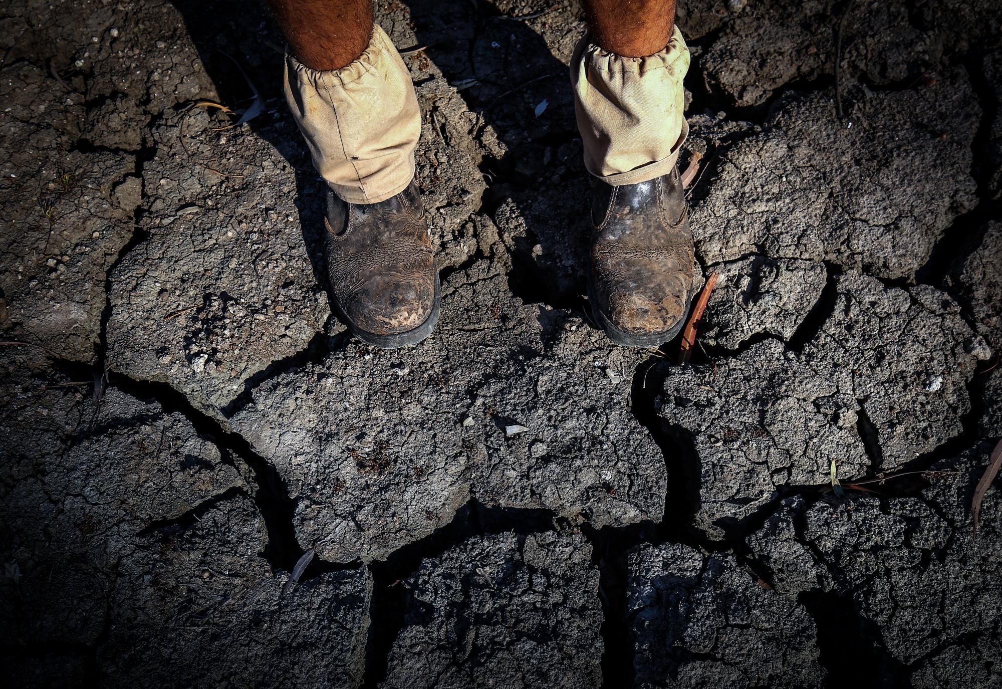 一位农民站在新南威尔士州沃尔格特的纳莫伊河干枯的河床上。