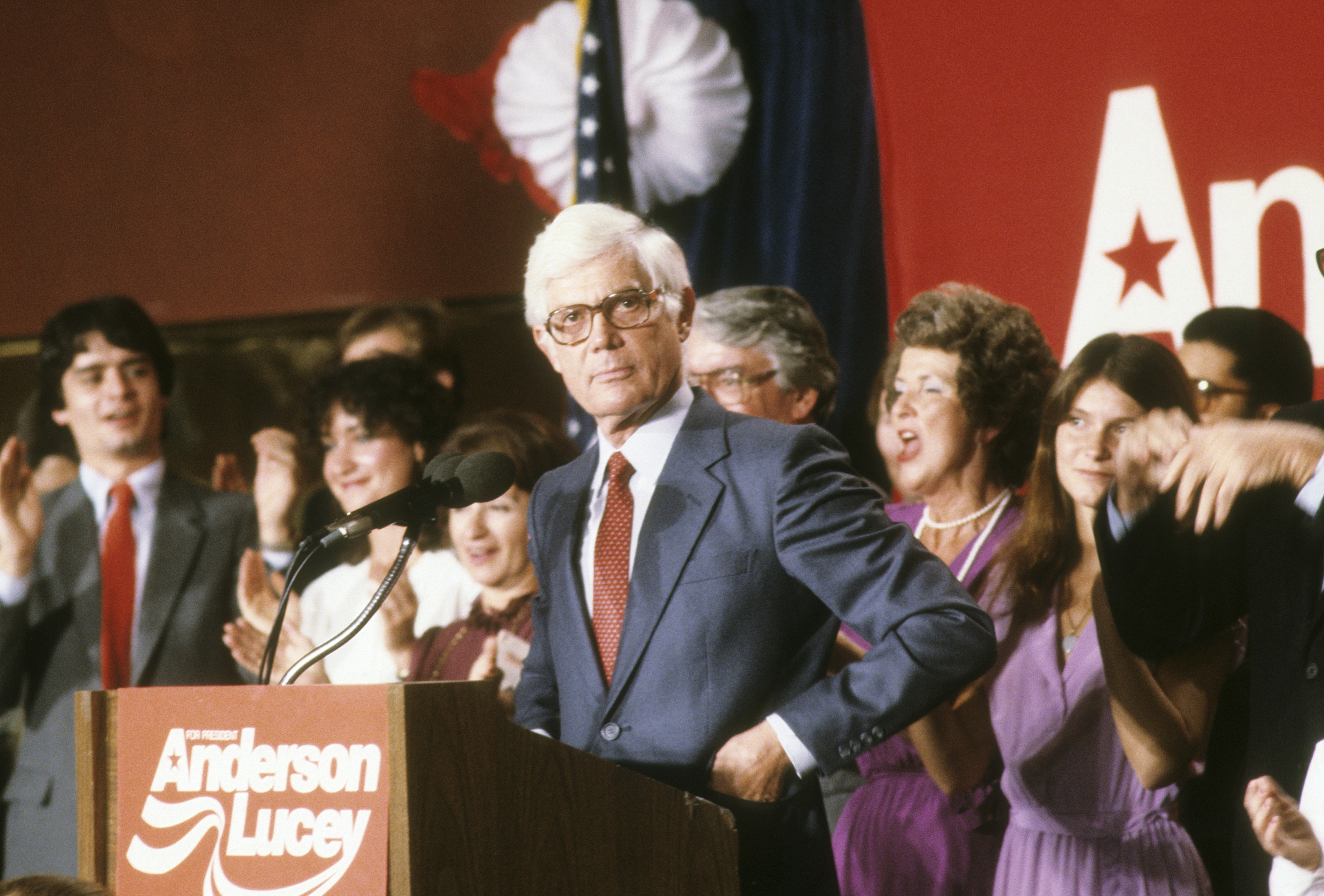 独立总统候选人约翰·安德森在1980年11月4日发表败选演讲。摄影师:大卫·休姆·肯纳利/盖蒂图片社资本大学法学教授马克·布朗曾参与处理涉及这些法律的案件,他表示,如果特朗普发起可信的第三党竞选,“一切皆有可能。”