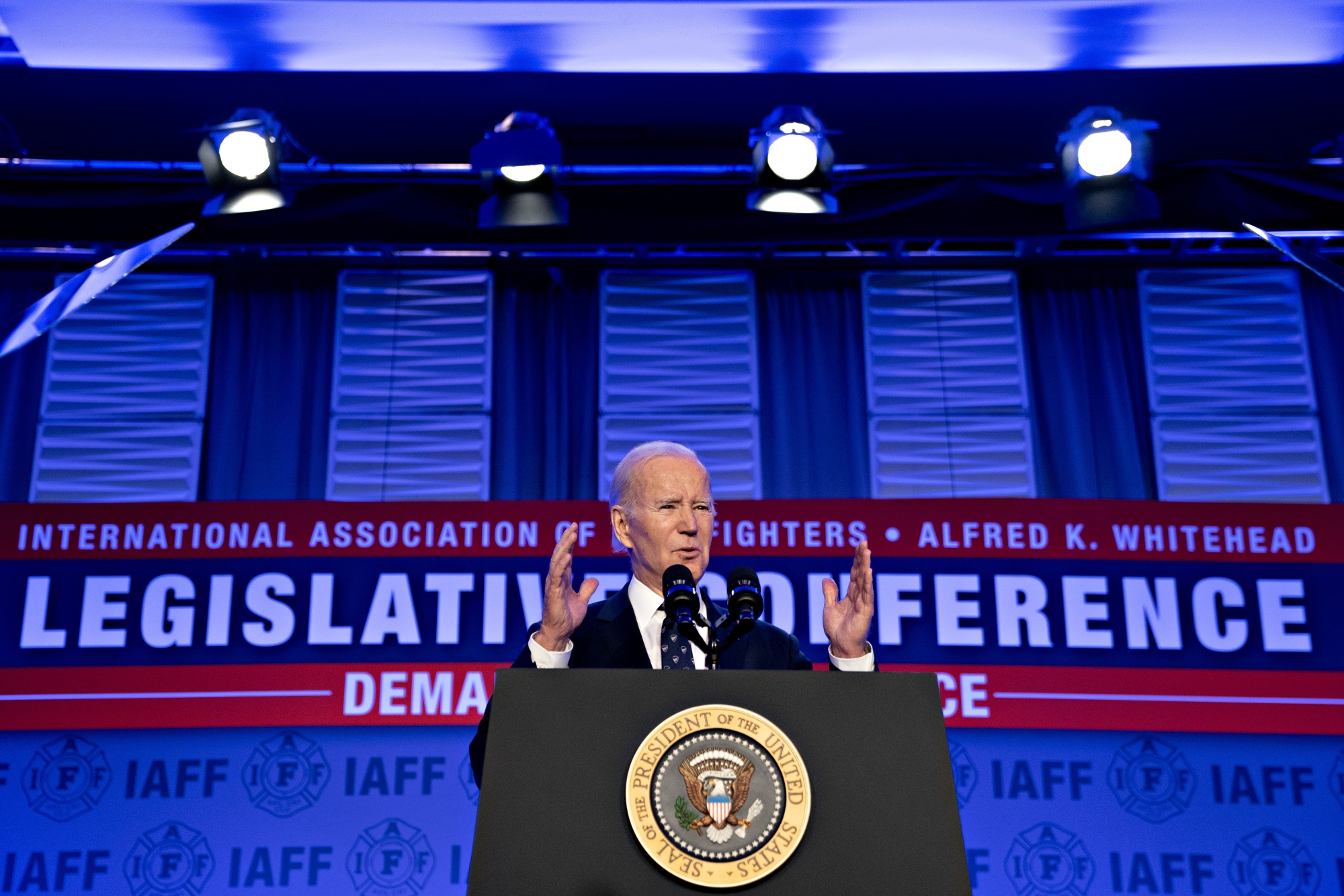 拜登消防员:向IAFF工会发表讲话 暗示2024年连任竞选 - 彭博社