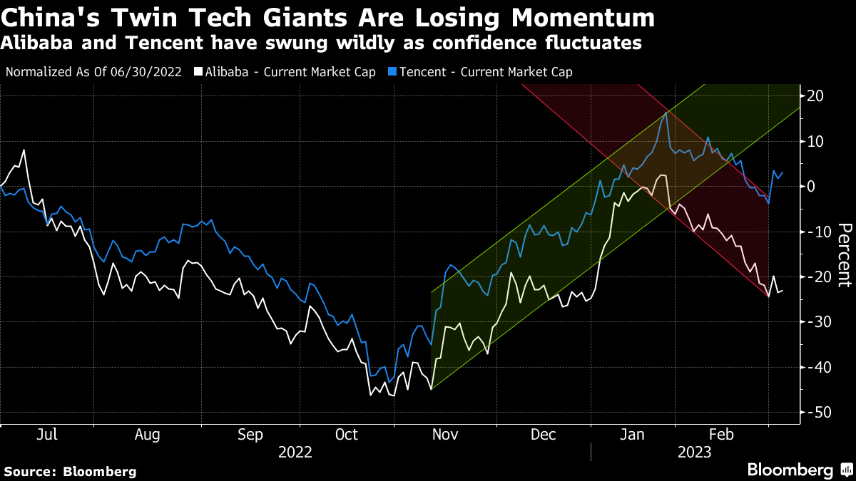 但中国的巨头们已经不再是曾经的辉煌。阿里巴巴曾经是一个庞然大物,准备侵入其电子商务业务相邻的每一个行业,最近一个季度仅增长了2%,因为它专注于削减成本。