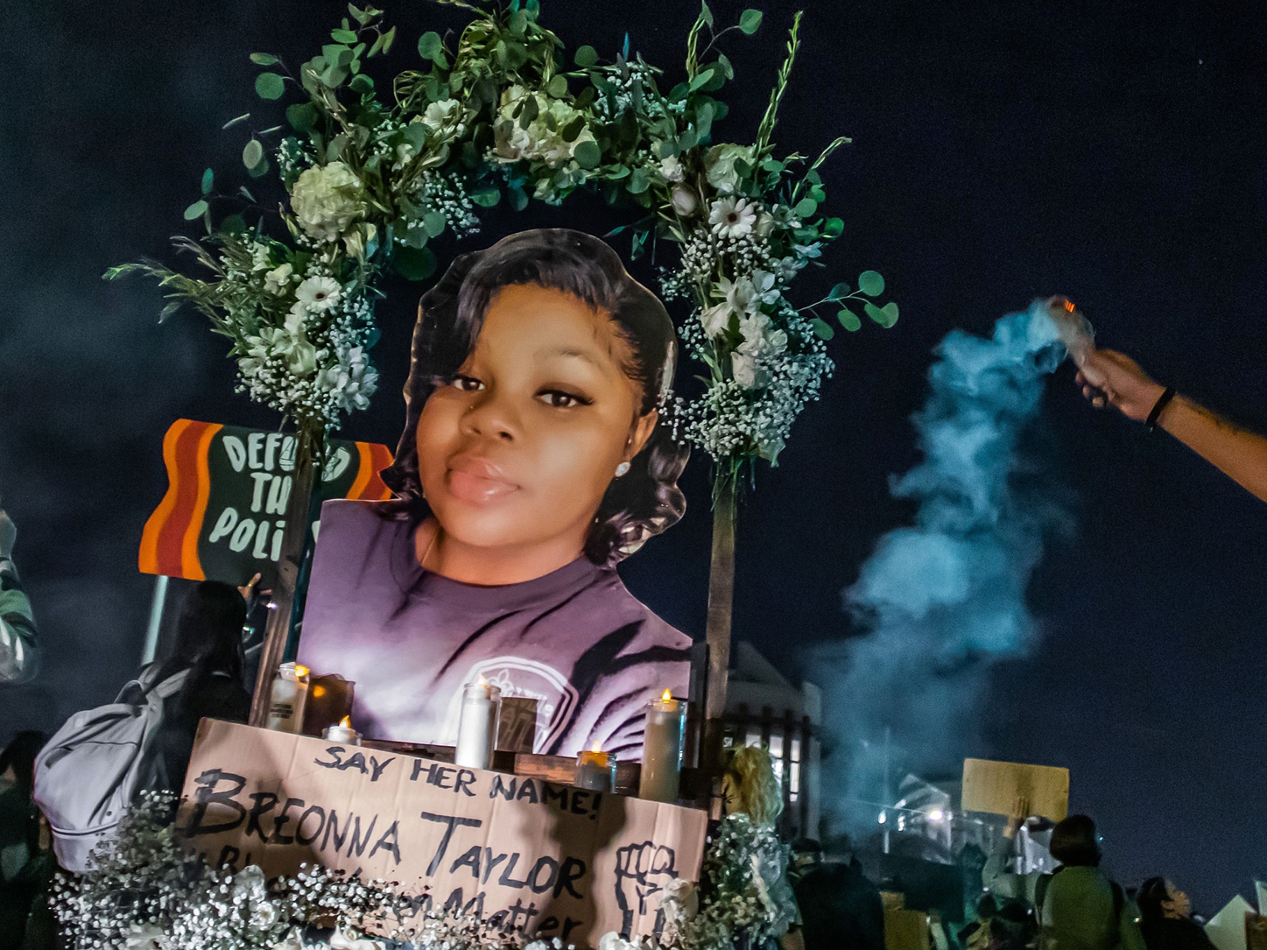 2020年9月,在洛杉矶举行的一次警察抗议游行中,一座布雷昂娜·泰勒纪念碑。