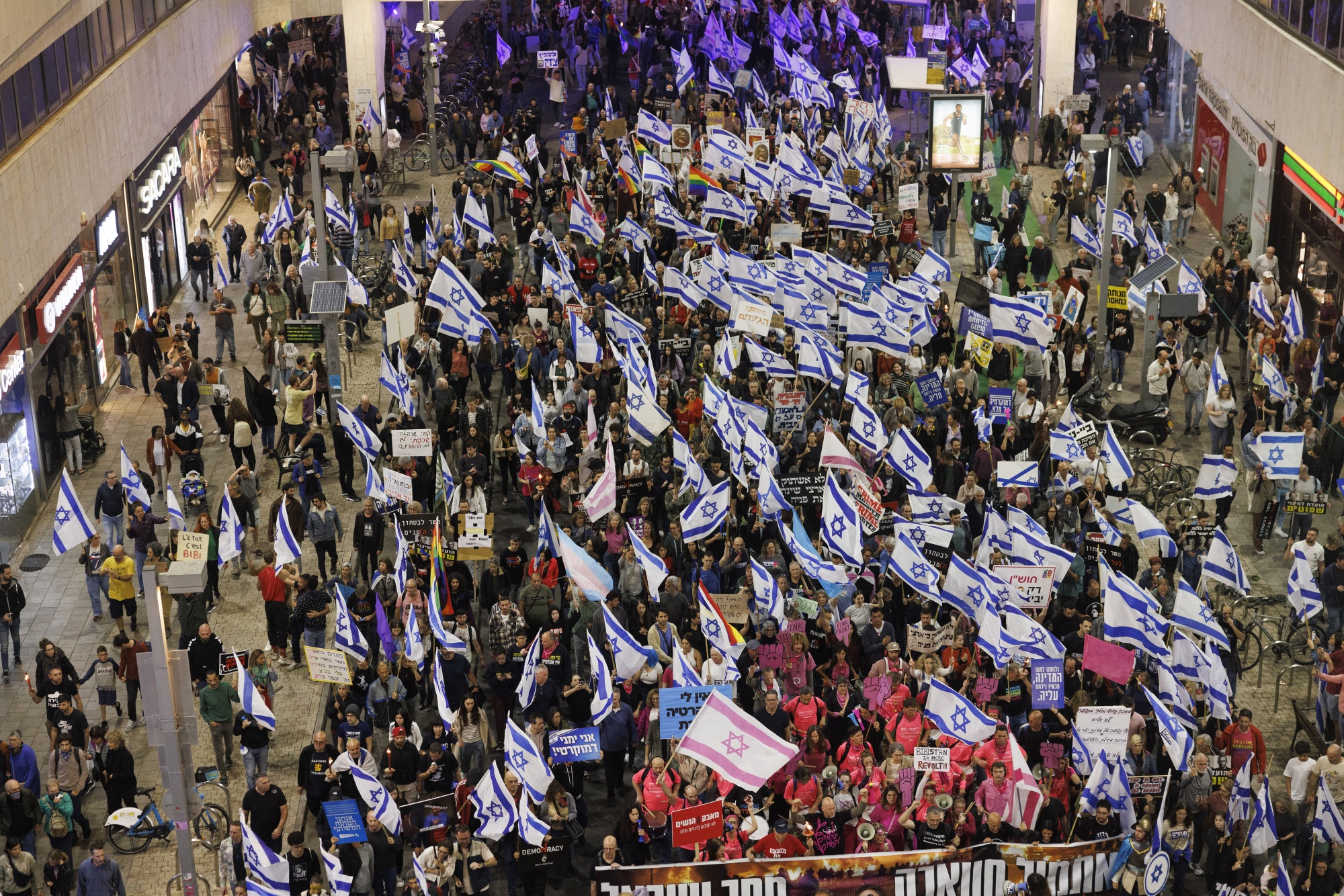 示威者参加了针对以色列特拉维夫总理本雅明·内塔尼亚胡政府计划改革司法系统的每周抗议活动,活动于3月4日举行。