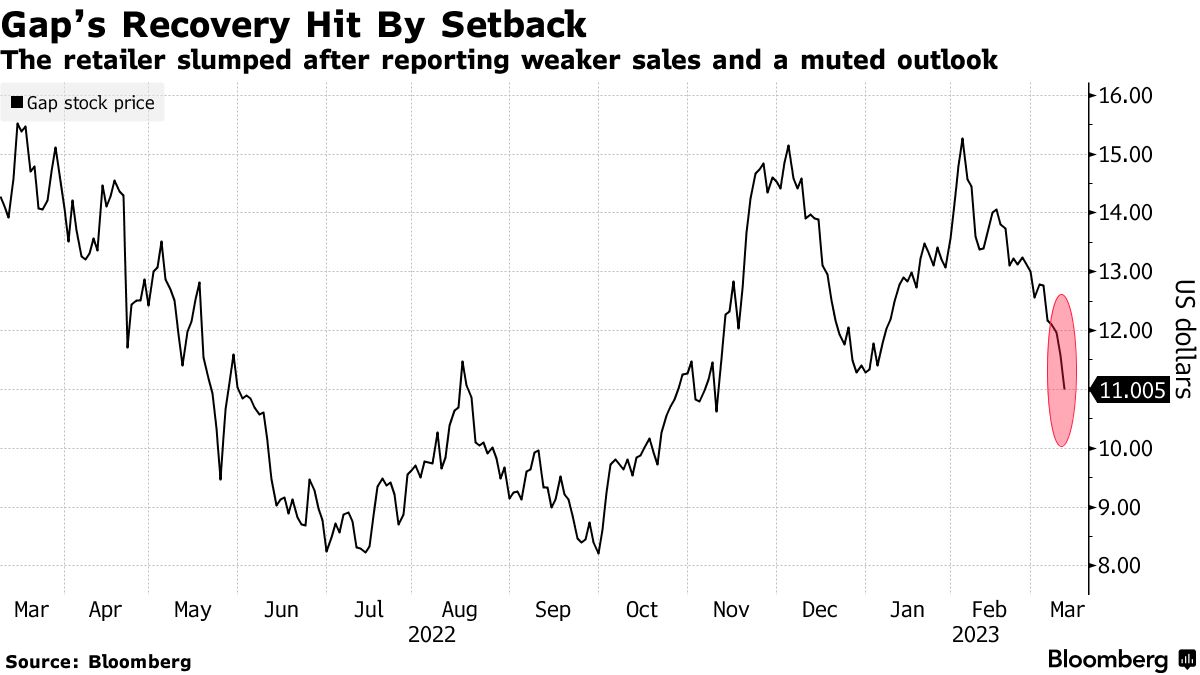 Gap(GPS)股票暴跌,季度销售不及预期,随后发布悲观预测-彭博社