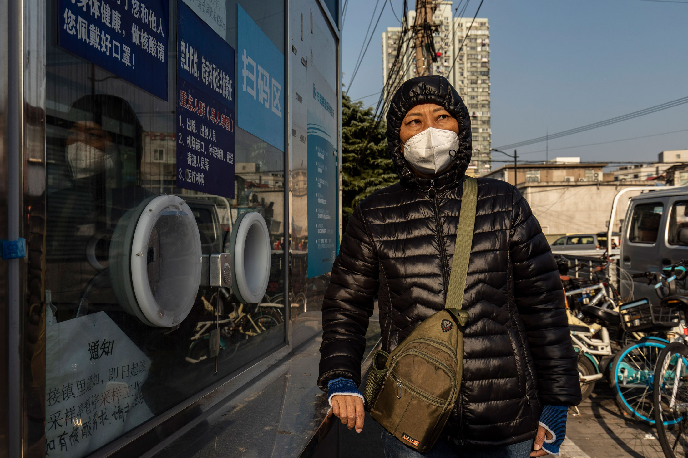 但随着对防疫措施的支持逐渐减弱,这些措施变得越来越难以维持且成本越来越高,地方官员开始调整优先事项。由政府支持但由第三方承包商发放的李的工资开始延迟发放,然后干脆不发放。李说,她在2022年最后两个月的检测亭工作还没有拿到工资。她因为没有钱而在农历新年时无法回家,不得不以400元(58美元)的价格卖掉了自己的摩托车来购买食物。“我们为抗击疫情做出了贡献,但为什么现在没有人照顾我们呢?”她说。二月份,李和其他大白向上海当地政府寻求帮助。他们在一个政府大楼的大门口坐了几天,但仍未得到工资。