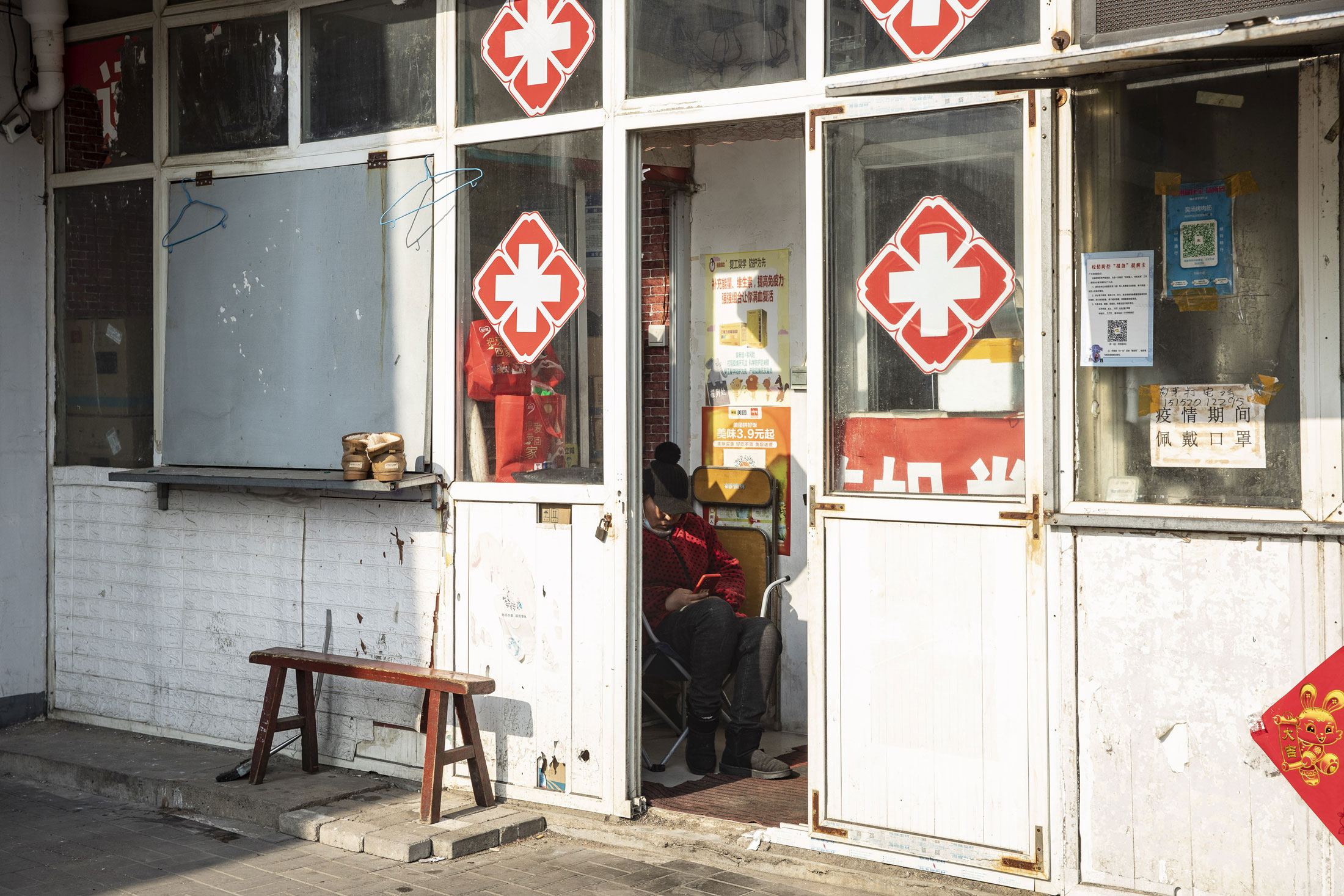 江苏省一家卫生诊所入口处的一名妇女。摄影师:神奇来/Bloomberg随着疾病的蔓延,人们无法不注意到的一件事是发热药和抗病毒药物的匮乏。特别是在农村地区,发热药很快就用完了。王健在河南省鹿邑县一个约有1,000人口的村庄里开设一家诊所,他说,在北京政策转变几周后,几乎每个家庭都有人前来就诊。由于无法获得普通的退烧药如布洛芬和对乙酰氨基酚,他使用安乃近和氨基比林等药物,这些药物在其他国家已被禁止使用,因为可能有危险的副作用。到了12月底,即使这些药物也难以获得。即便如此,他所在的村庄比隔壁村庄情况要好,那里许多老年人在没有干预的情况下死亡。“农村诊所无法与大城市医院在硬件上相提并论,但及时开药仍然可以挽救很多生命,”他说。“这真是一个遗憾。”