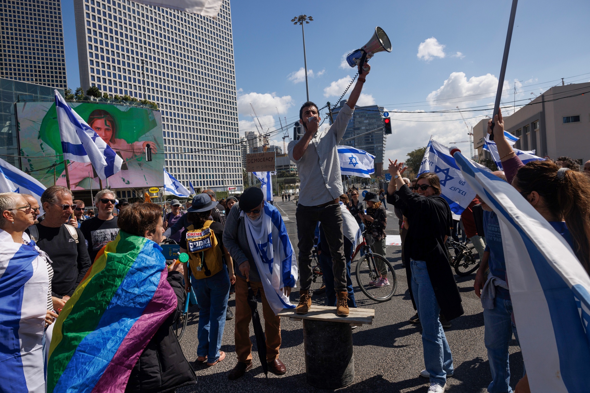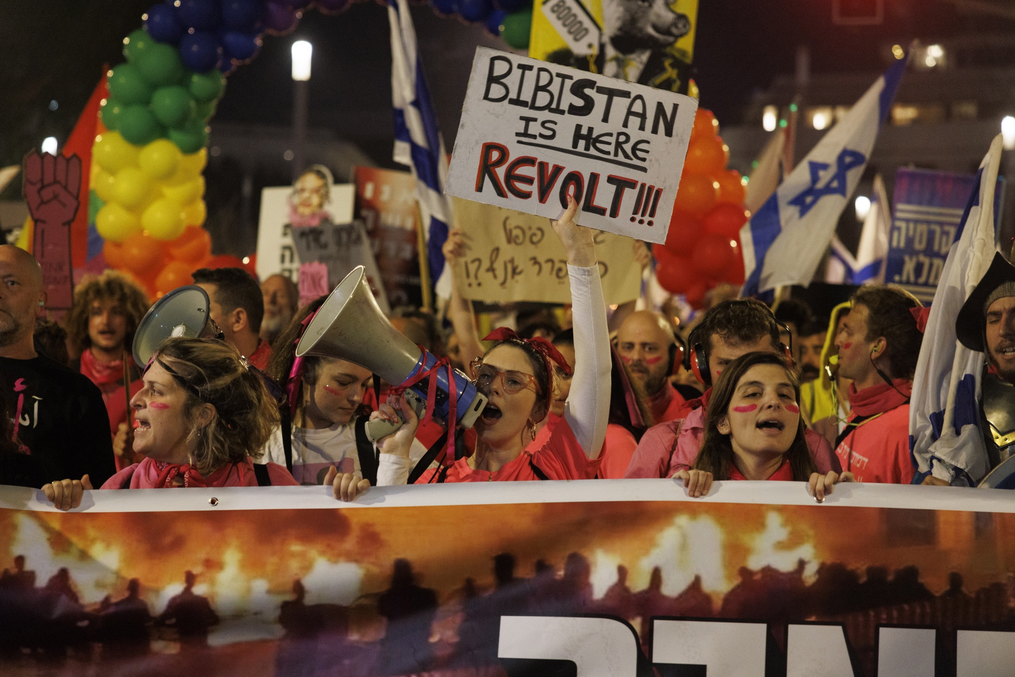 示威者抗议本雅明·内塔尼亚胡政府计划改革司法系统,3月4日在特拉维夫。