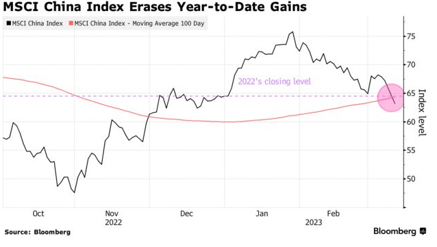但在大厅外,对习的领导力的信任已经动摇,特别是在11月份的大规模抗议活动之后,导致他的“零疫情”战略混乱退出。随着立法会议令投资者失望,希望得到更清晰的复苏增长呼吁,MSCI中国指数抹去了全年的涨幅。