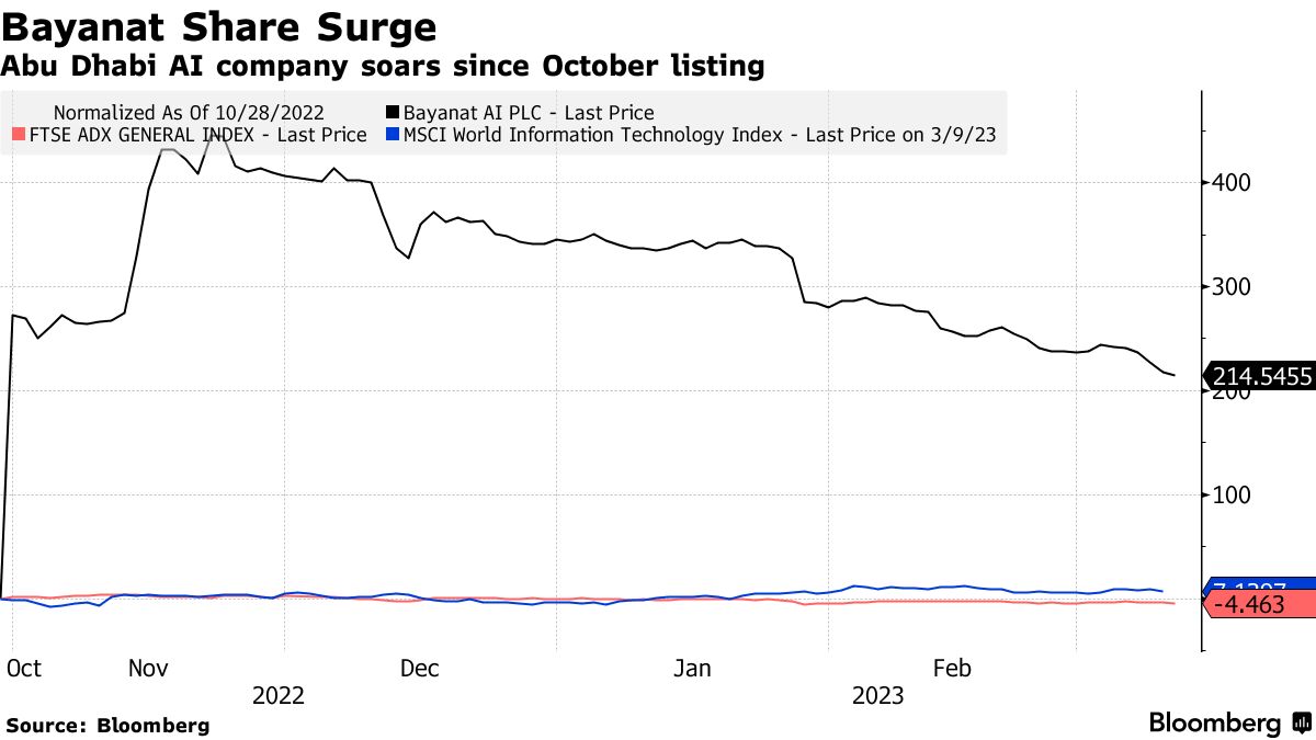 巴亚纳特的股价周一下跌了多达5.2%,是六周多以来的最大跌幅,然后抹去了这些损失。与同期MSCI世界信息技术指数上涨5.3%和阿布扎比基准指数下跌4.5%相比,该股比首次公开募股价格上涨约218%。