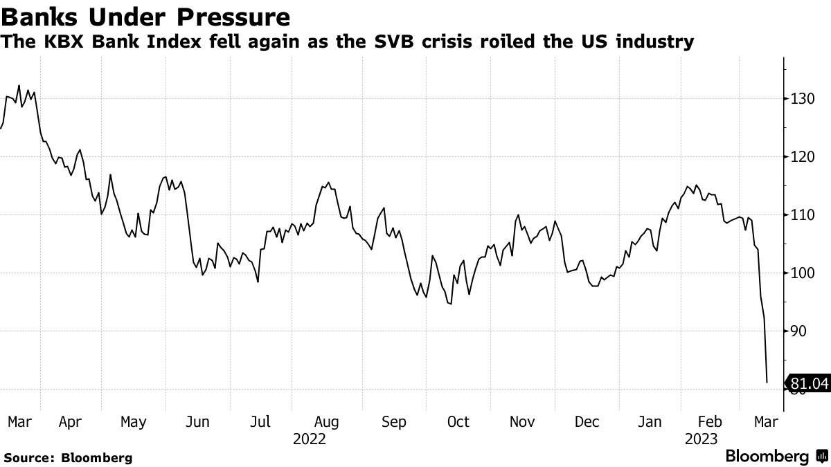 在KBW银行指数的24只股票中,地区银行领跌,跌幅是自2020年3月以来最大的。该指数正走向第六个连续下跌,这是自十月以来最长的。 Western Alliance Bancorp暴跌61%,然后交易停牌,First Republic Bank暴跌66%。