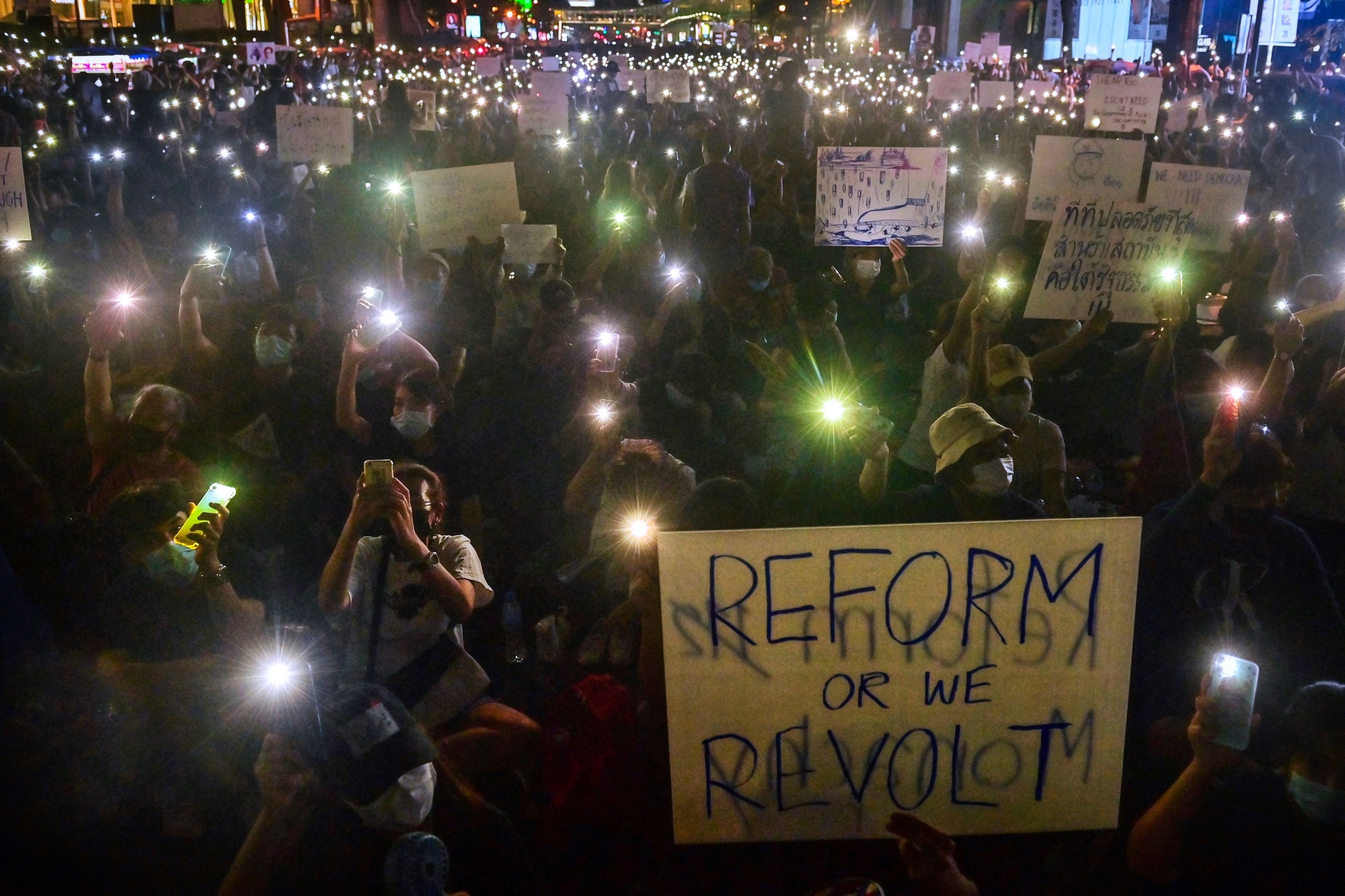 2020年和2021年席卷曼谷和其他泰国城市的示威活动打破了长期以来的禁忌,呼吁修改君主制度和放宽所谓的诽谤罪法律,这些法律将对国王和近亲进行侮辱定为犯罪。在巴育政府的镇压之后,这场运动已经凋零,许多领导人要么被监禁,要么保释出狱。然而,一些活动人士正在Move Forward党参加选举。