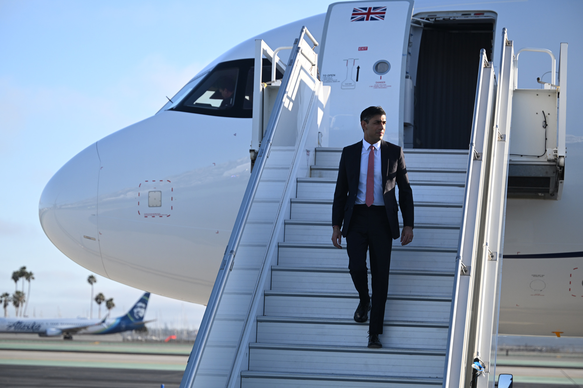 里希·苏纳克于3月12日抵达圣地亚哥国际机场。摄影师:Leon Neal/Getty Images