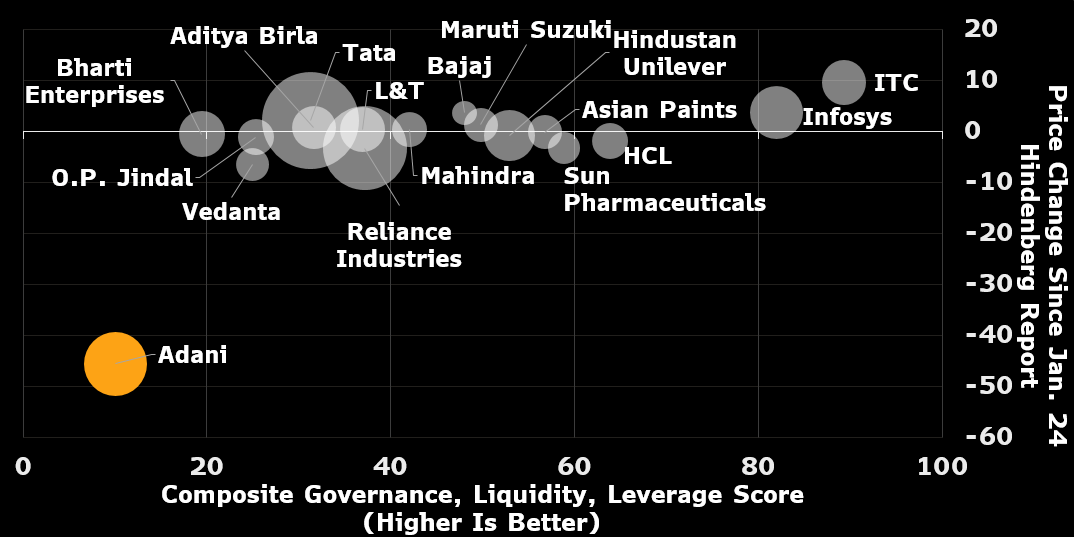 来源:巴西中央银行3. 治理风险正在上升,但尚未成为主要关注点。Adani集团股市暴跌引发了对印度公司治理的质疑。但我们的分析显示,Adani的糟糕治理、流动性和杠杆状况在印度大型企业中属于异常情况。印度公司还将受益于该国实际GDP增长相对于世界其他地区的表现。在巴西,大型零售商Americanas发现大规模会计不一致性,加剧了公司信贷担忧,同时受到高利率的压力。