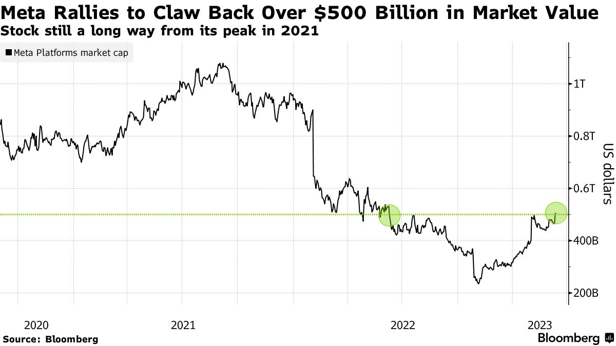 2023年,Meta平台公司的股价上涨了61%,Facebook的母公司将其称为“效率之年”,以改善其财务表现并实现长期目标。Meta周二首次自6月以来收盘价超过5000亿美元,此前它表示计划裁员约1万人,并在过去六个月的第二轮大规模裁员中关闭约5000个职位。至少十几名分析师在宣布后提高了他们对该股票的目标价。