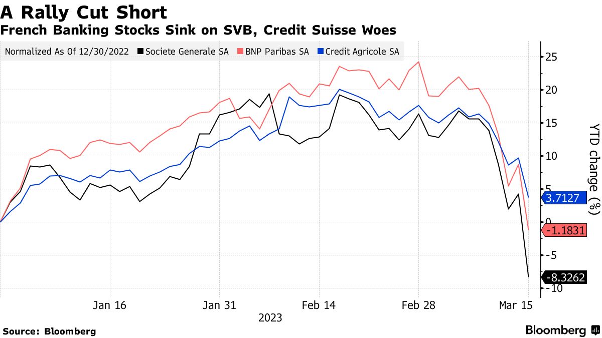 法国银行股票最近几天下跌,由于担心瑞士信贷的情况,其最大股东表示绝对不会再向这家瑞士银行注资。