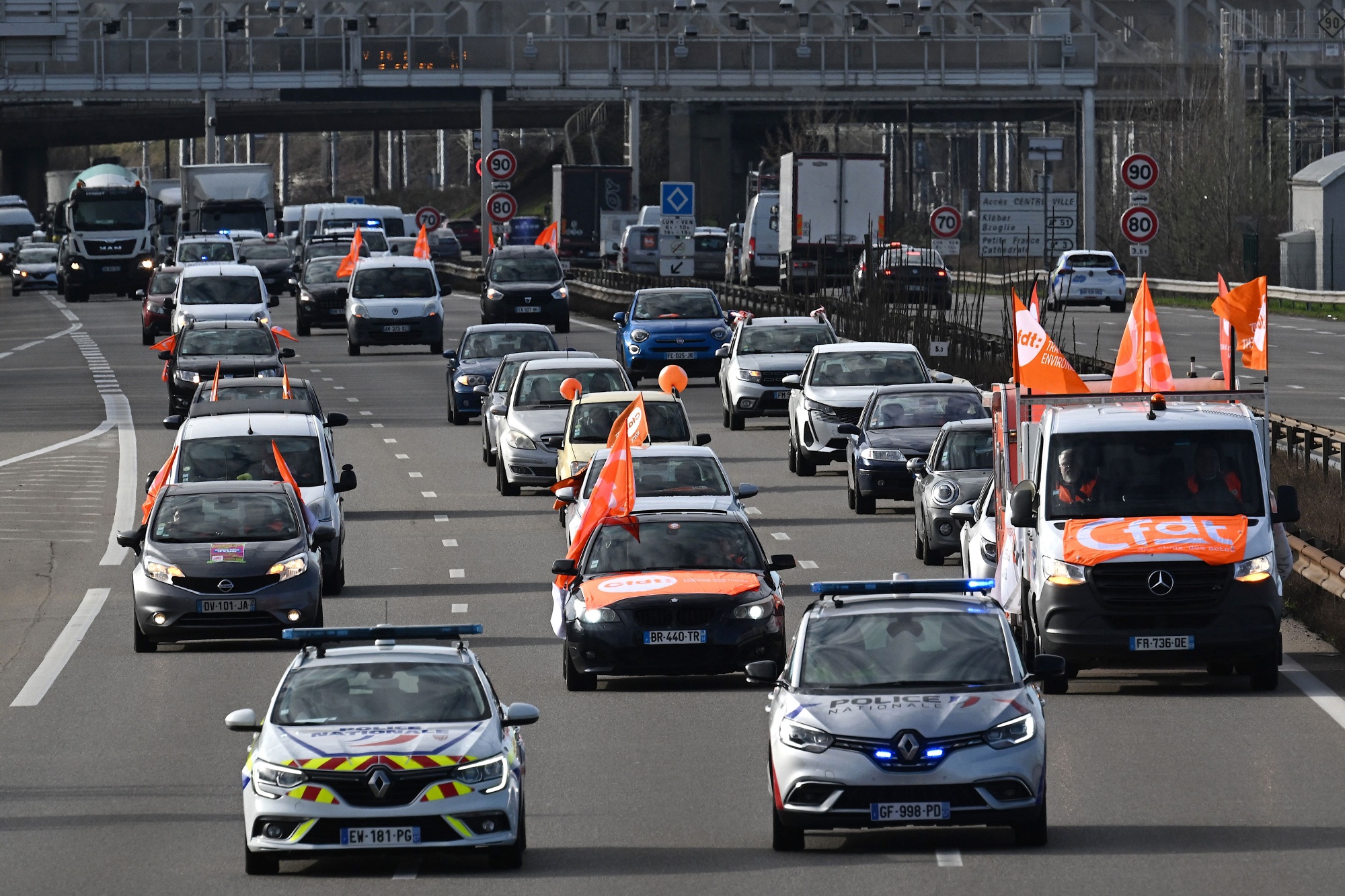 法国工会会员于3月15日在斯特拉斯堡减缓交通。