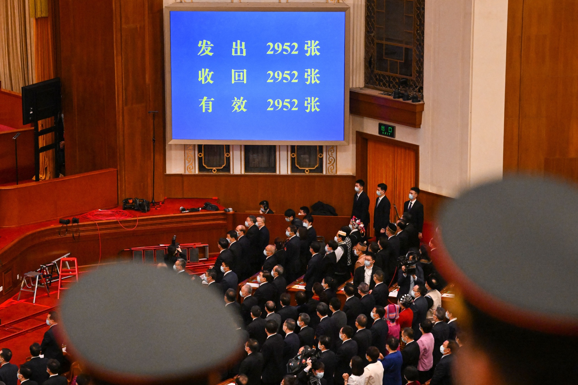 习在橡皮图章式的全国人大中最后一次遭到反对的投票是在2013年,当时他赢得了他的第一个五年任期,2952-1,还有三名议员弃权。