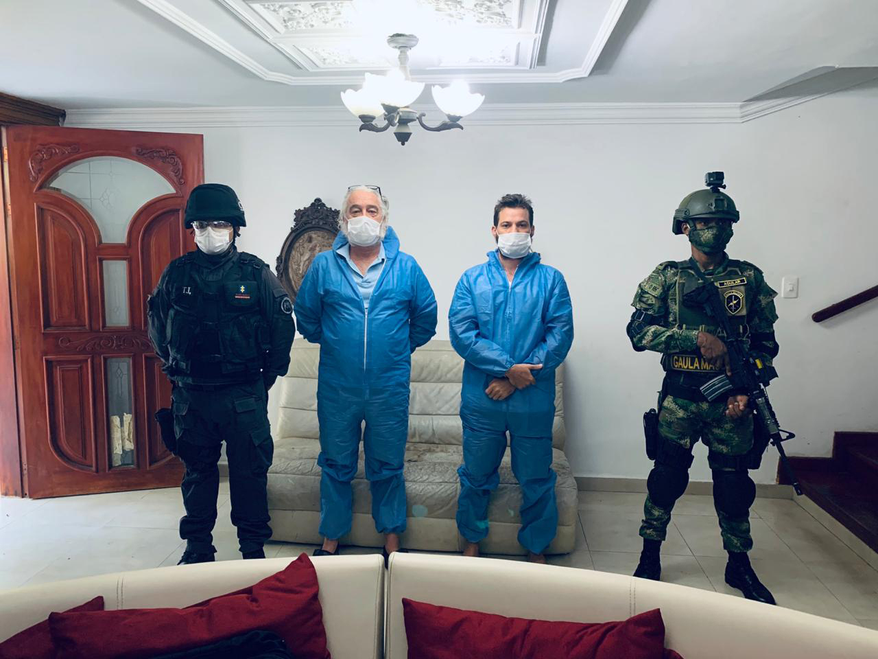 马克·格伦(左二)和他的儿子约瑟夫·格伦于2020年8月在哥伦比亚的圣玛尔塔被当局逮捕。格伦父子正在等待美国的阴谋和其他联邦指控的审判。来源:哥伦比亚检察官办公室通过美联社照片对传统医学或政策制定者的不信任被专家普遍认为是导致人们相信健康错误信息的最大因素。