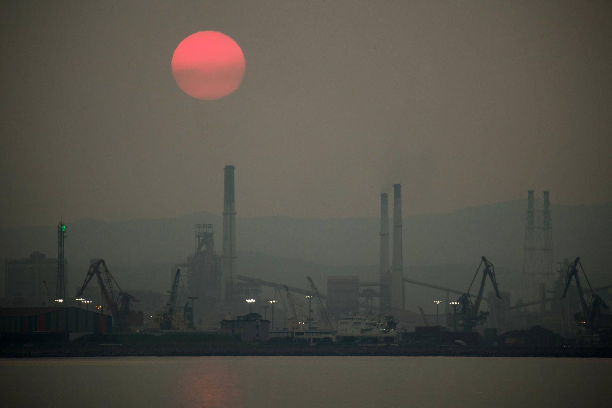 太阳在2018年7月17日落在韩国浦项的POSCO钢铁厂上。这座城市越来越被视为韩国新的电动汽车电池产业之都。