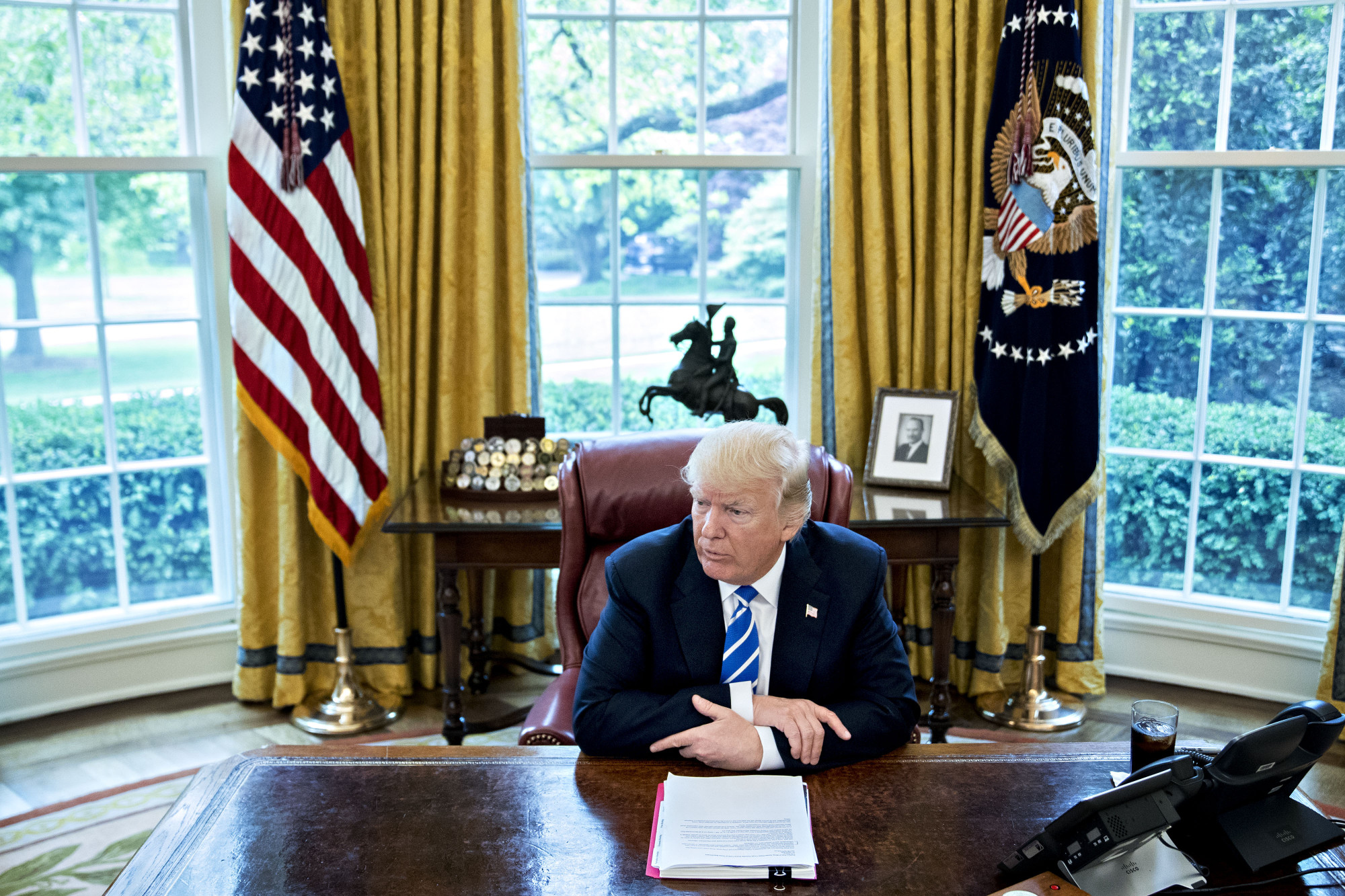 唐纳德·特朗普在2017年椭圆形办公室。