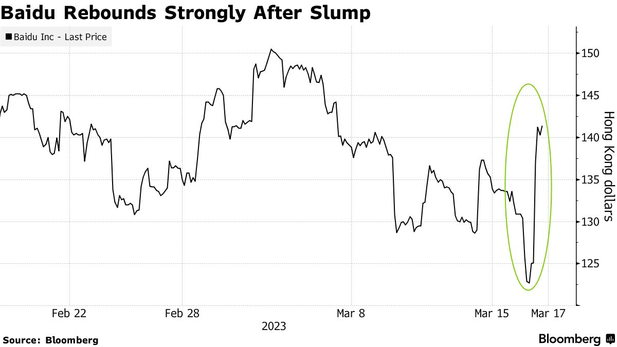 周四创始人李彦宏发布了中国版ChatGPT的录制视频后,百度的股价逆转了周四的6.4%跌幅,这让一些投资者感到失望,他们希望看到这家中国科技领域最引人注目的参与者在技术主导竞赛中进行实时演示。首次亮相。